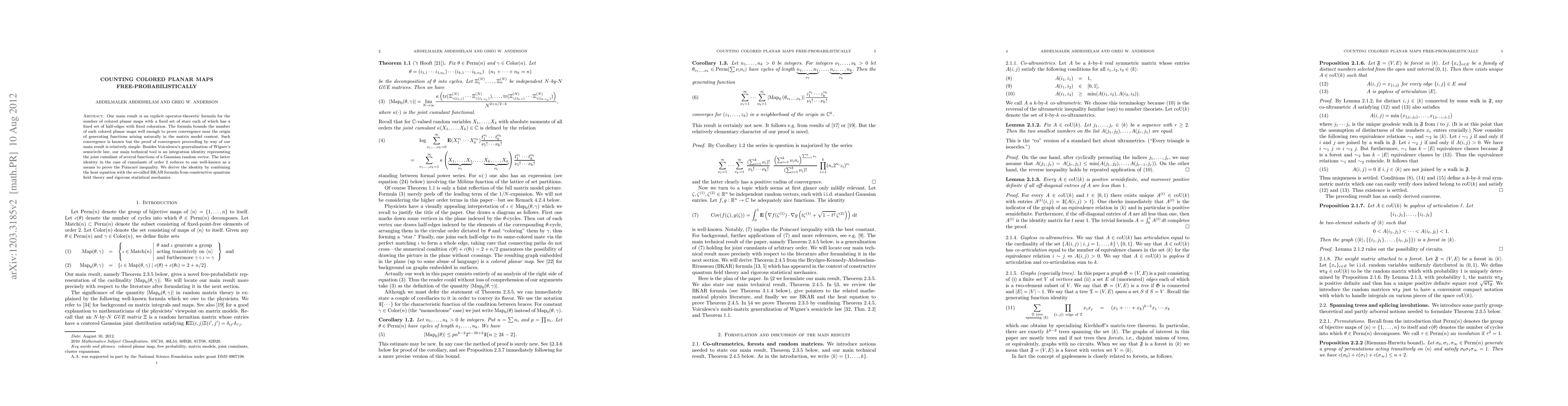 Our main result is an explicit operator-theoretic formula for the number of colored planar maps with a fixed set of stars each of which has a fixed set of half-edges with fixed coloration. The formula bounds the number of such colored planar maps well enough to prove convergence near the origin of generating functions arising naturally in the matrix model context. Such convergence is known but the proof of convergence proceeding by way of our main result is relatively simple. Besides Voiculescu's generalization of Wigner's semicircle law, our main technical tool is an integration identity representing the joint cumulant of several functions of a Gaussian random vector. The latter identity in the case of cumulants of order 2 reduces to one well-known as a means to prove the Poincare inequality. We derive the identity by combining the heat equation with the so-called BKAR formula from constructive quantum field theory and rigorous statistical mechanics.