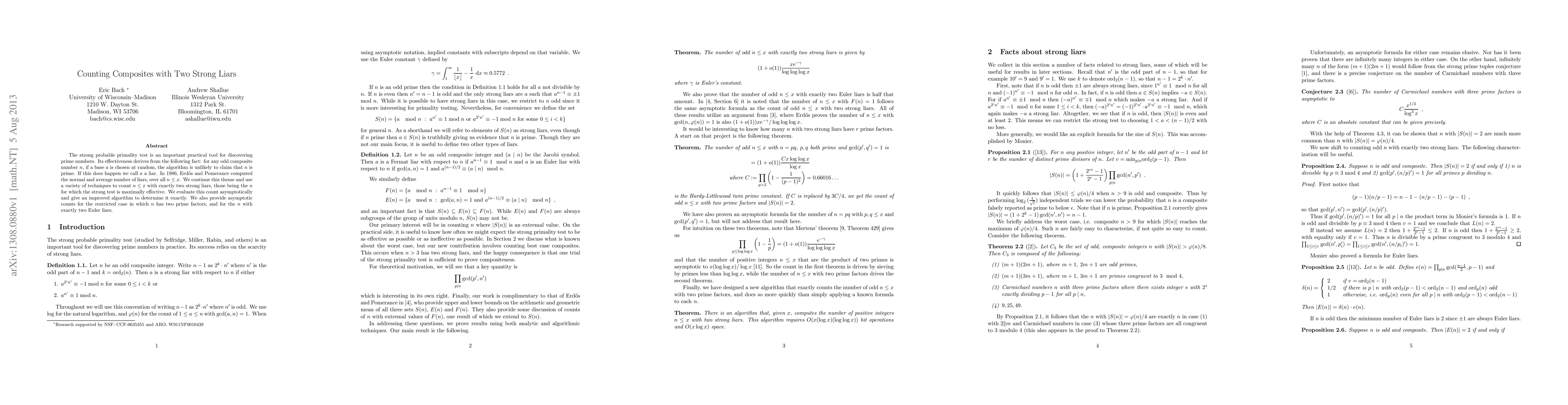 The strong probable primality test is an important practical tool for discovering prime numbers. Its effectiveness derives from the following fact: for any odd composite number $n$, if a base $a$ is chosen at random, the algorithm is unlikely to claim that $n$ is prime. If this does happen we call $a$ a liar. In 1986, Erd\H{o}s and Pomerance computed the normal and average number of liars, over all $n \leq x$. We continue this theme and use a variety of techniques to count $n \leq x$ with exactly two strong liars, those being the $n$ for which the strong test is maximally effective. We evaluate this count asymptotically and give an improved algorithm to determine it exactly. We also provide asymptotic counts for the restricted case in which $n$ has two prime factors, and for the $n$ with exactly two Euler liars.