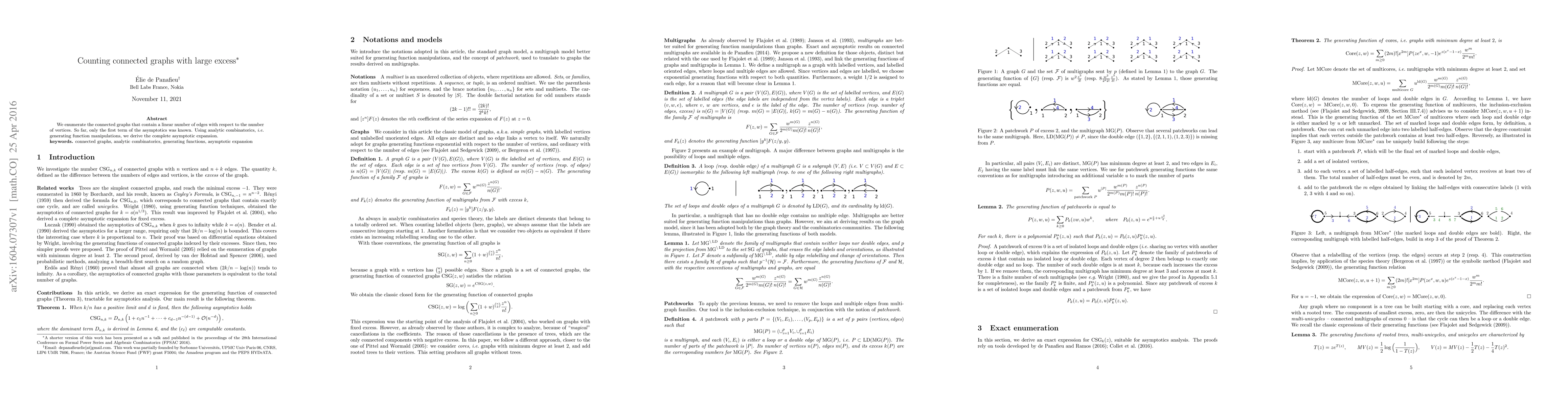 We enumerate the connected graphs that contain a linear number of edges with respect to the number of vertices. So far, only the first term of the asymptotics was known. Using analytic combinatorics, i.e. generating function manipulations, we derive the complete asymptotic expansion.