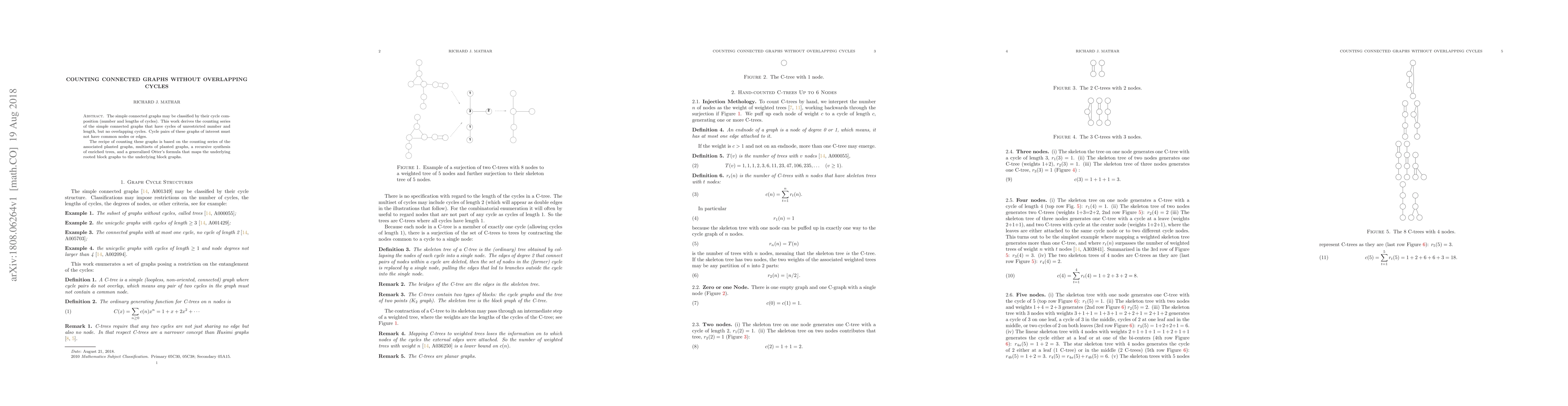 This paper derives a counting series for simple connected graphs with unrestricted cycle numbers and lengths but without overlapping cycles, employing methods from planted graphs, recursive tree synthesis, and Otter's formula to achieve this. The focus is on ensuring no shared nodes or edges between cycle pairs.