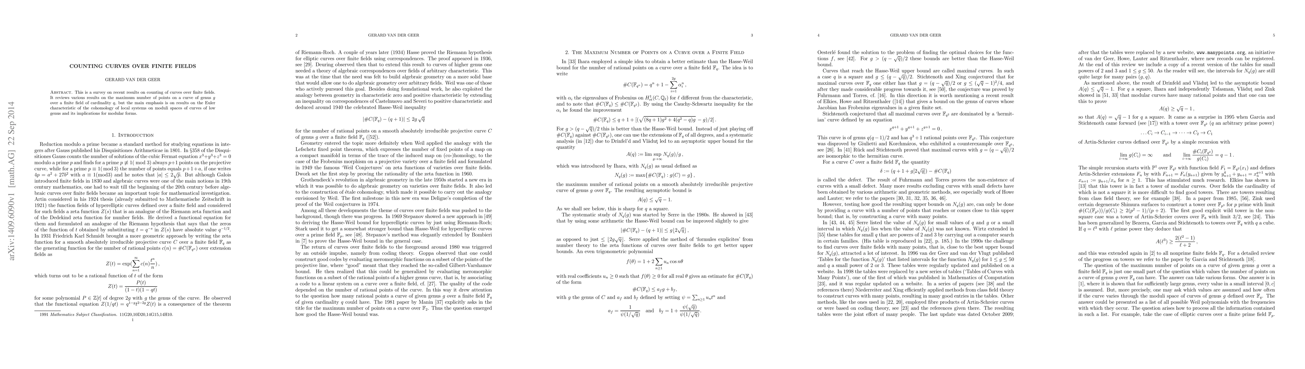 This paper surveys recent advancements in counting curves over finite fields, focusing on the maximum number of points on curves of genus g over finite fields of cardinality q, and explores the Euler characteristic of cohomology in moduli spaces of low genus curves, linking these to modular forms.