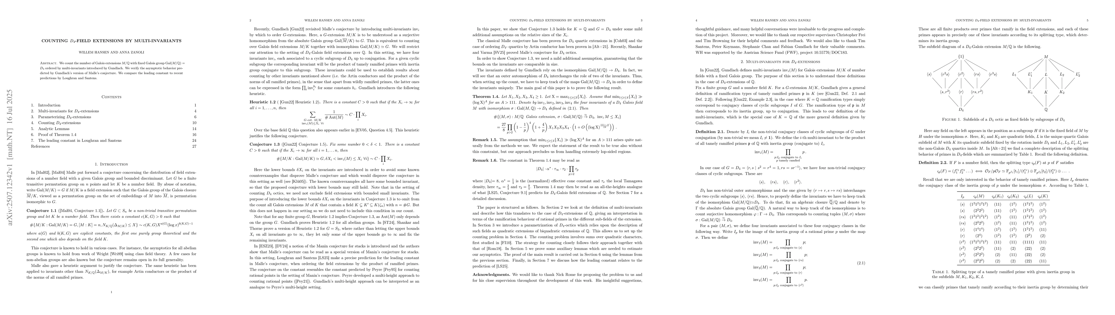 We count the number of Galois extensions $M/\mathbb{Q}$ with fixed Galois group $\text{Gal}(M/\mathbb{Q})=D_4$ ordered by multi-invariants introduced by Gundlach. We verify the asymptotic behavior predicted by Gundlach's version of Malle's conjecture. We compare the leading constant to recent predictions by Loughran and Santens.