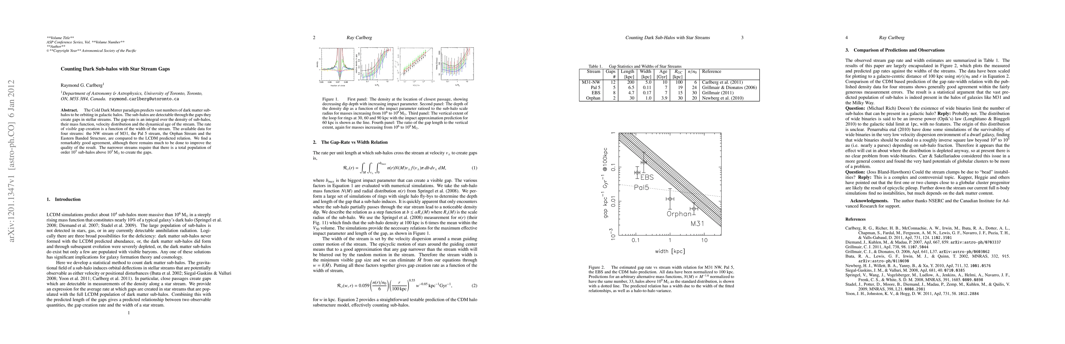 The Cold Dark Matter paradigm predicts vast numbers of dark matter sub-halos to be orbiting in galactic halos. The sub-halos are detectable through the gaps they create gaps in stellar streams. The gap-rate is an integral over the density of sub-halos, their mass function, velocity distribution and the dynamical age of the stream. The rate of visible gap creation is a function of the width of the stream. The available data for four streams: the NW stream of M31, the Pal~5 stream, the Orphan Stream and the Eastern Banded Structure, are compared to the LCDM predicted relation. We find a remarkably good agreement, although there remains much to be done to improve the quality of the result. The narrower streams require that there is a total population of order 10^5 sub-halos above 10^5 M_sun to create the gaps.