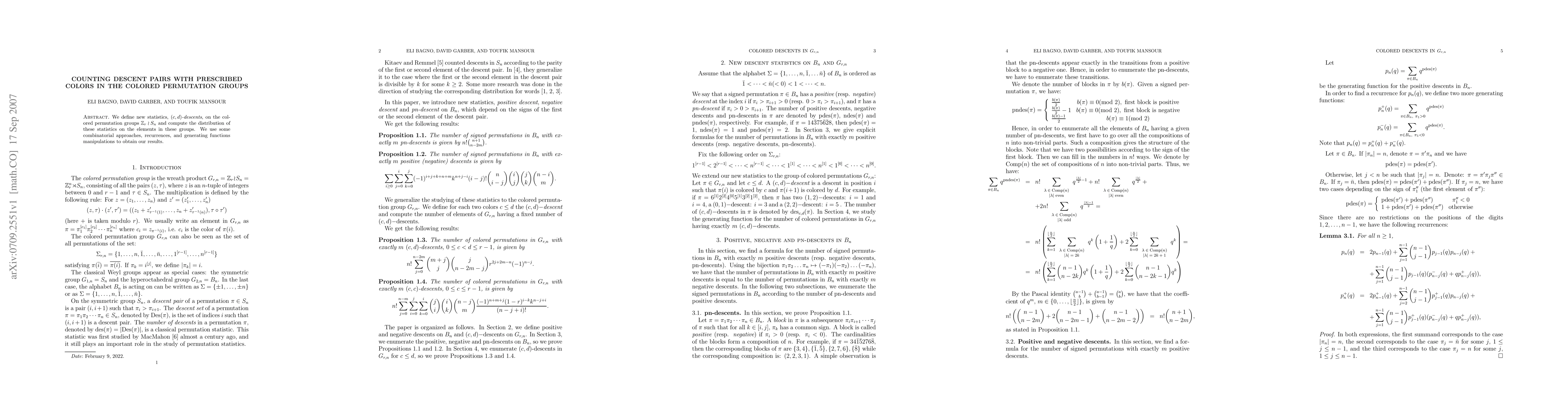 This paper introduces a new statistic for counting descent pairs in colored permutation groups, using combinatorial methods and generating functions to analyze its distribution. The study provides insights into the properties of these statistics, with potential implications for understanding permutations and their applications.