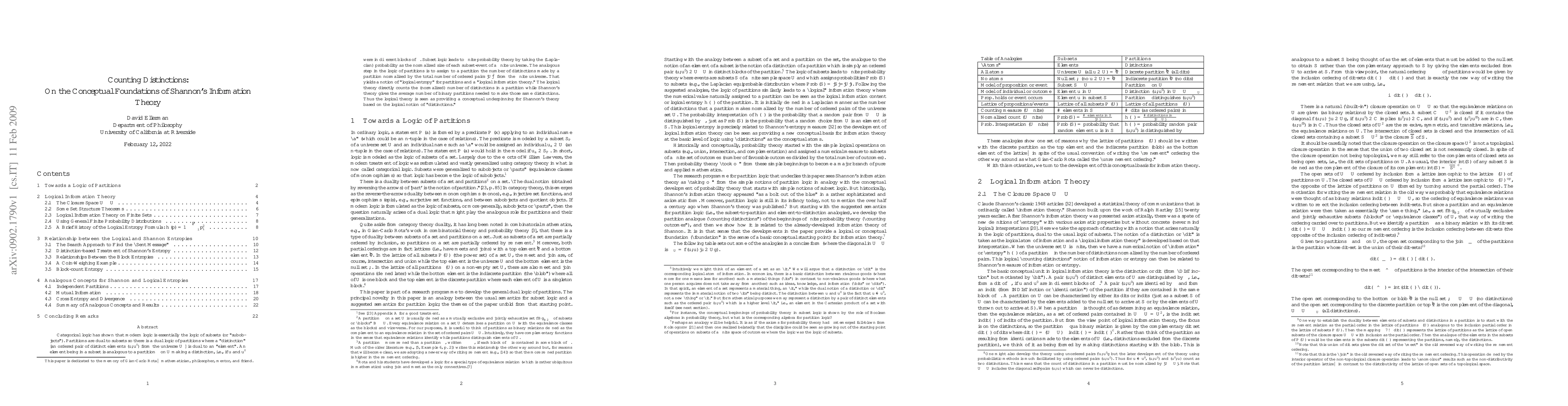 Categorical logic has shown that modern logic is essentially the logic of subsets (or "subobjects"). Partitions are dual to subsets so there is a dual logic of partitions where a "distinction" [an ordered pair of distinct elements (u,u') from the universe U ] is dual to an "element". An element being in a subset is analogous to a partition p on U making a distinction, i.e., if u and u' were in different blocks of p. Subset logic leads to finite probability theory by taking the (Laplacian) probability as the normalized size of each subset-event of a finite universe. The analogous step in the logic of partitions is to assign to a partition the number of distinctions made by a partition normalized by the total number of ordered pairs |UxU| from the finite universe. That yields a notion of "logical entropy" for partitions and a "logical information theory." The logical theory directly counts the (normalized) number of distinctions in a partition while Shannon's theory gives the average number of binary partitions needed to make those same distinctions. Thus the logical theory is seen as providing a conceptual underpinning for Shannon's theory based on the logical notion of "distinctions." (forthcoming in Synthese)