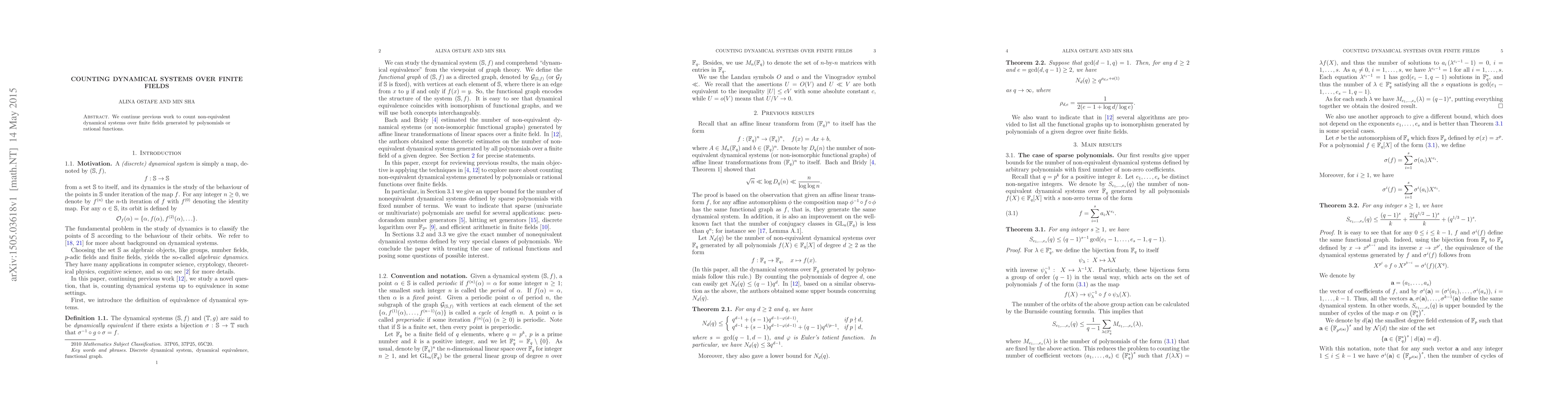 We continue previous work to count non-equivalent dynamical systems over finite fields generated by polynomials or rational functions.