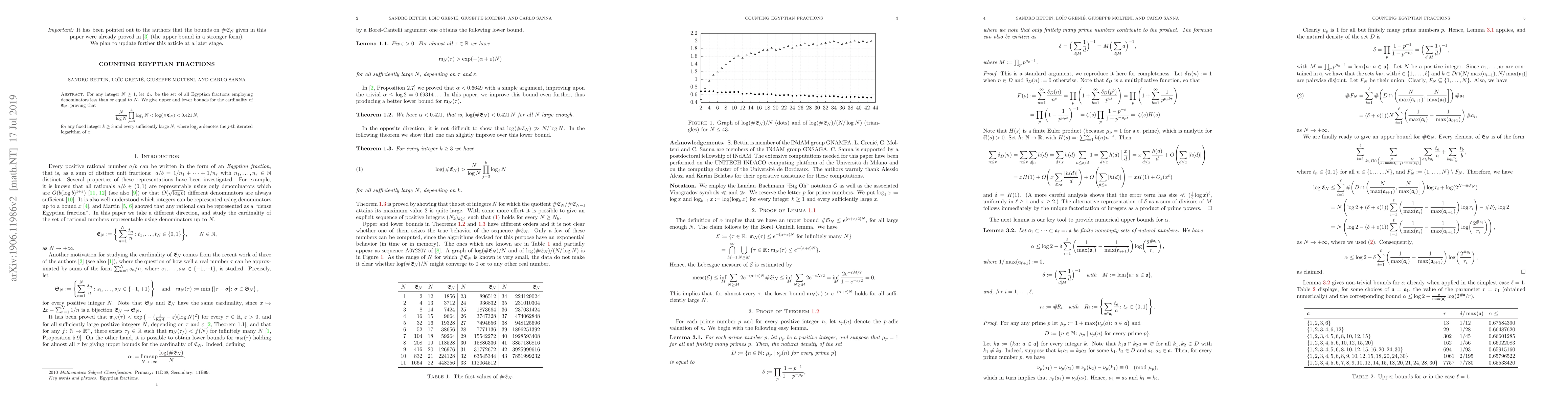 The paper establishes upper and lower bounds for the number of Egyptian fractions with denominators less than or equal to N, showing a relationship between N and its logarithm.