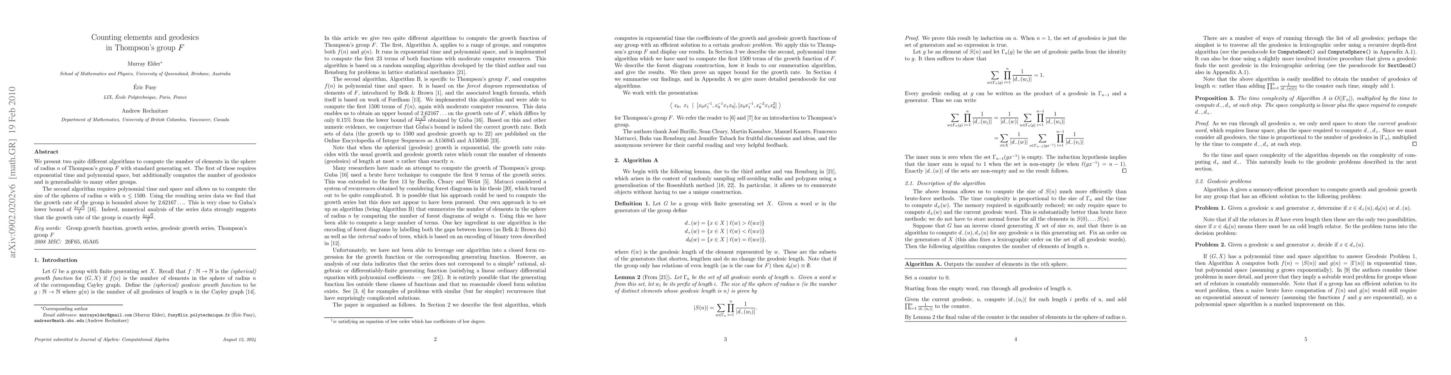 We present two quite different algorithms to compute the number of elements in the sphere of radius $n$ of Thompson's group $F$ with standard generating set. The first of these requires exponential time and polynomial space, but additionally computes the number of geodesics and is generalisable to many other groups. The second algorithm requires polynomial time and space and allows us to compute the size of the spheres of radius $n$ with $n \leq 1500$. Using the resulting series data we find that the growth rate of the group is bounded above by $2.62167...$. This is very close to Guba's lower bound of $\tfrac{3+\sqrt{5}}{2}$ \cite{Guba2004}. Indeed, numerical analysis of the series data strongly suggests that the growth rate of the group is exactly $\tfrac{3+\sqrt{5}}{2}$.