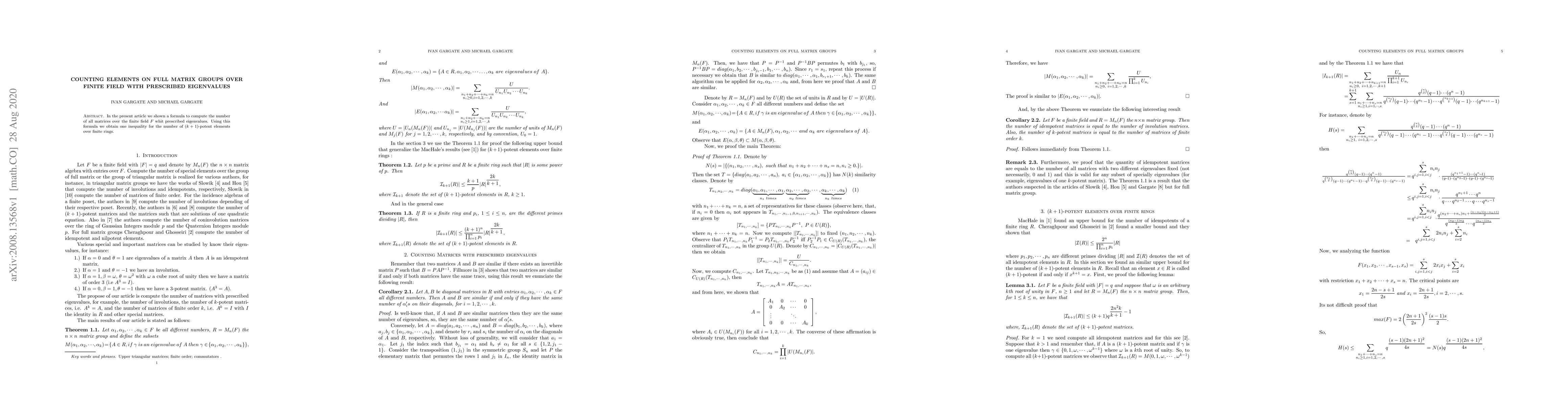 Researchers developed a formula to count matrices over finite fields with prescribed eigenvalues, leading to new insights into $(k+1)$-potent elements over finite rings.