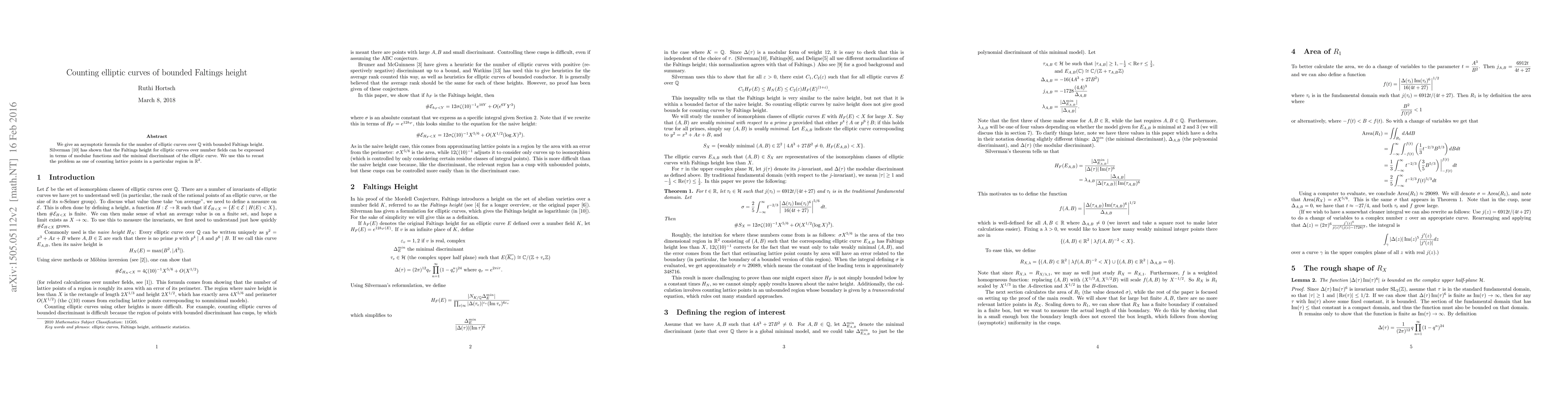 This paper provides an asymptotic formula for the number of elliptic curves over $\mathbb{Q}$ with a specified range for their Faltings height, using modular functions and the minimal discriminant to count lattice points in a defined $\mathbb{R}^2$ region.