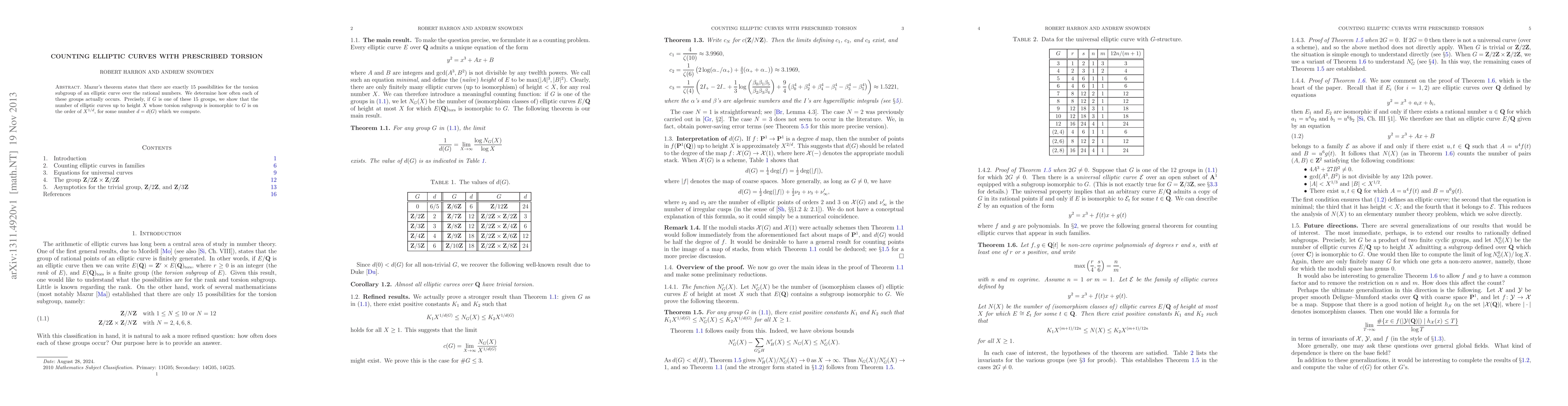 The novelty lies in the detailed asymptotic analysis for each of the 15 possible torsion groups, extending previous work that only provided bounds for the trivial group and the group Z/2Z.