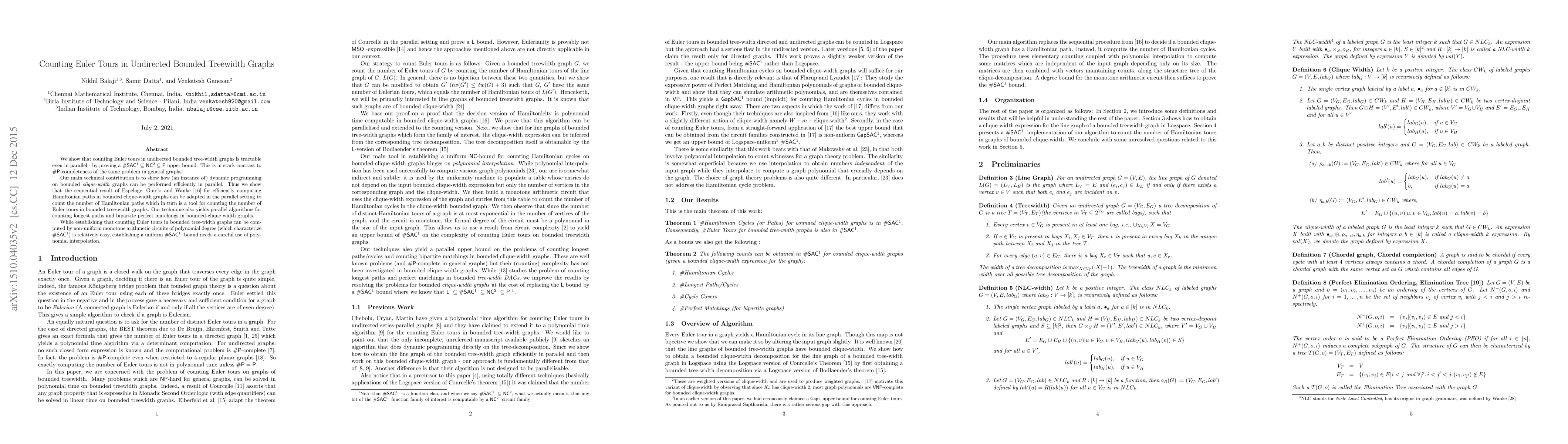 The paper demonstrates that counting Euler tours in undirected graphs with bounded treewidth is tractable in parallel, providing a $\#SAC^1$ upper bound, contrasting with the #P-completeness in general graphs. The key technical contribution is efficiently performing parallel dynamic programming on bounded clique-width graphs to count Hamiltonian paths, which aids in counting Euler tours.