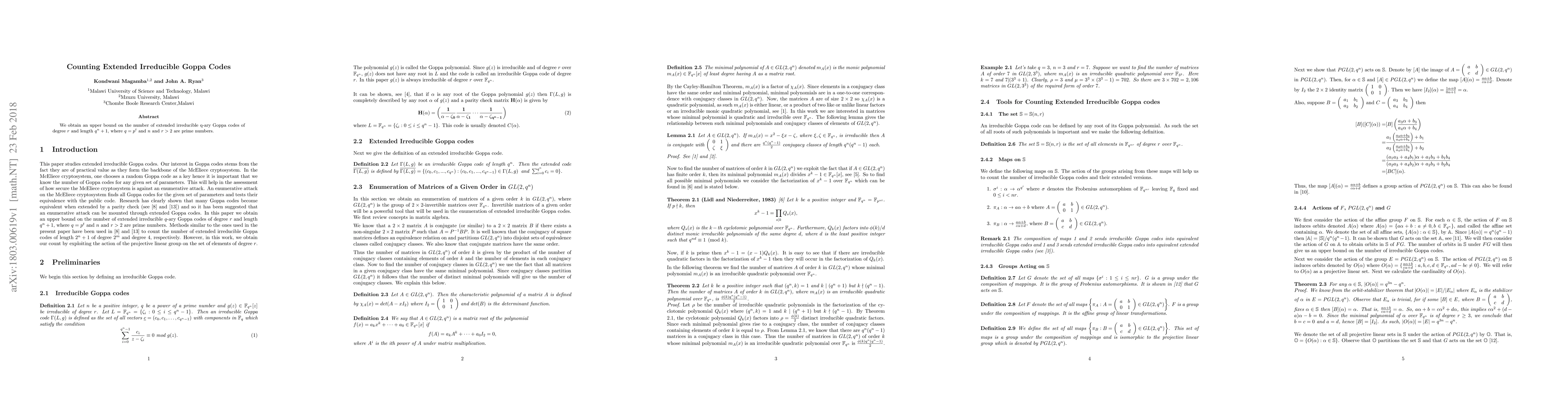 Summary: This paper provides an upper bound for the number of extended irreducible q-ary Goppa codes of degree $r$ and length $q^n+1$, where $q=p^t$ and $n$ and $r$ are prime numbers greater than 2. The findings contribute to the understanding of the structure and enumeration of these codes.