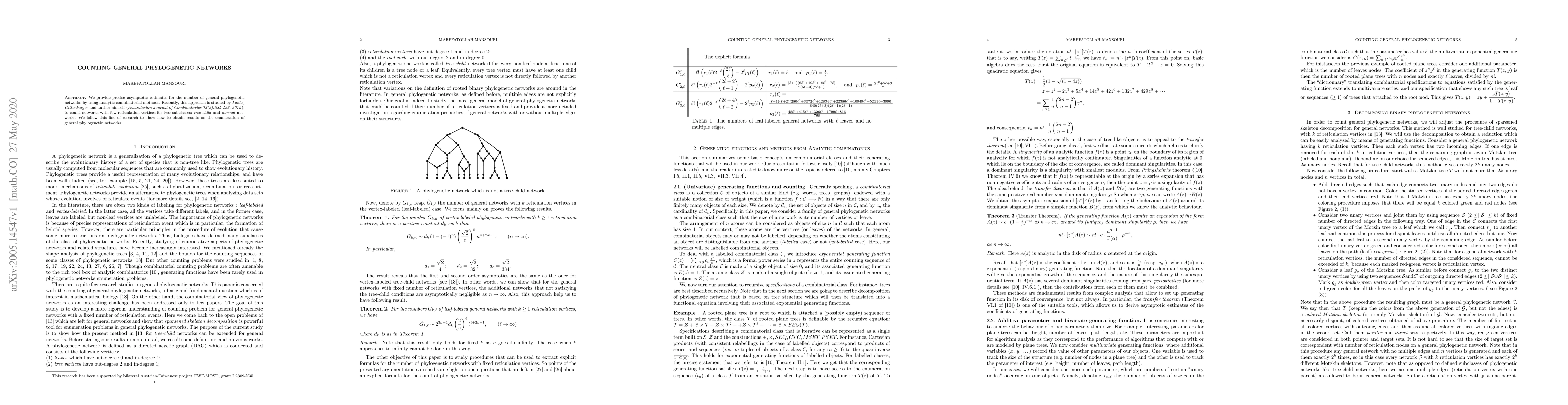 This paper provides asymptotic estimates for the number of general phylogenetic networks using analytic combinatorial methods, extending previous work on subclasses like tree-child and normal networks. The study aims to enumerate all general phylogenetic networks.