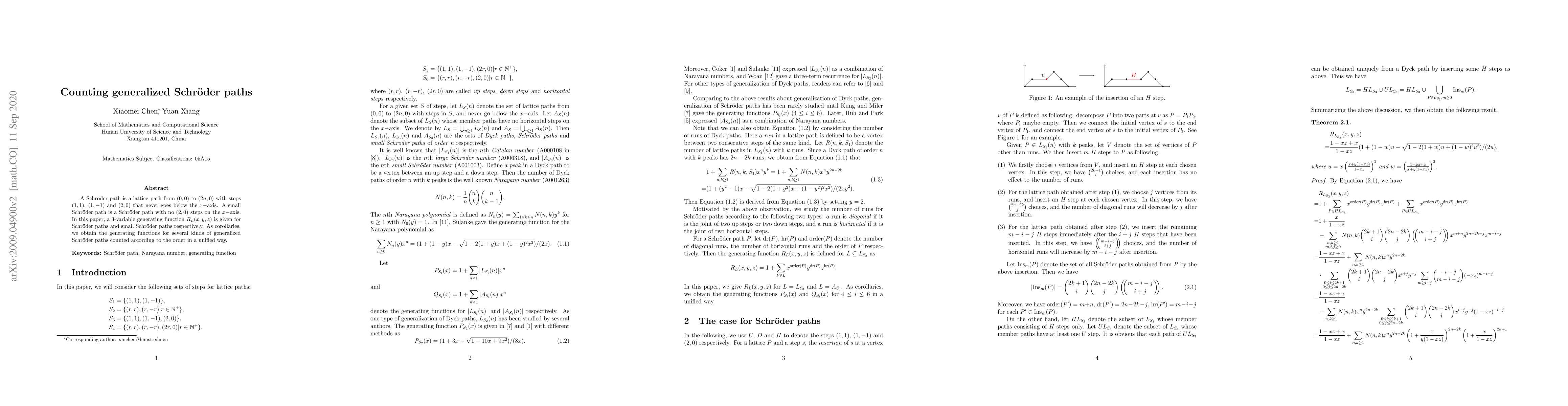 The paper introduces a 3-variable generating function RLS3(x, y, z) for Schröder paths and small Schröder paths, along with methods to derive generating functions for various kinds of generalized Schröder paths.