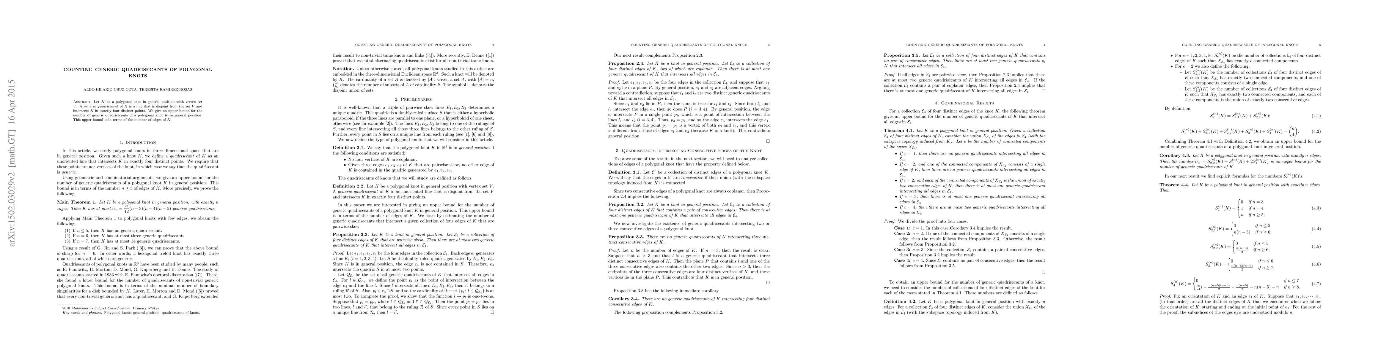 This paper provides an upper bound for the number of generic quadrisecants—lines intersecting a polygonal knot in exactly four distinct points without touching the vertices—in terms of the knot's edge count. The study focuses on polygonal knots in general position.