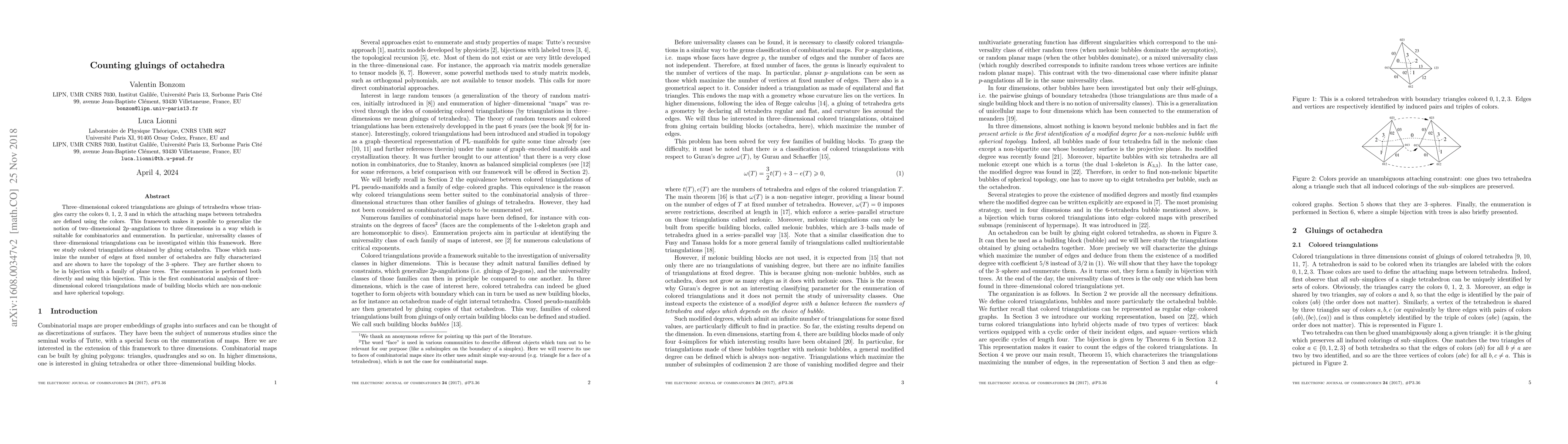Three--dimensional colored triangulations are gluings of tetrahedra whose faces carry the colors 0, 1, 2, 3 and in which the attaching maps between tetrahedra are defined using the colors. This framework makes it possible to generalize the notion of two--dimensional $2p$--angulations to three dimensions in a way which is suitable for combinatorics and enumeration. In particular, universality classes of three--dimensional triangulations can be investigated within this framework. Here we study colored triangulations obtained by gluing octahedra. Those which maximize the number of edges at fixed number of octahedra are fully characterized and are shown to have the topology of the 3--sphere. They are further shown to be in bijection with a family of trees, a result which is confirmed by the exact enumeration.