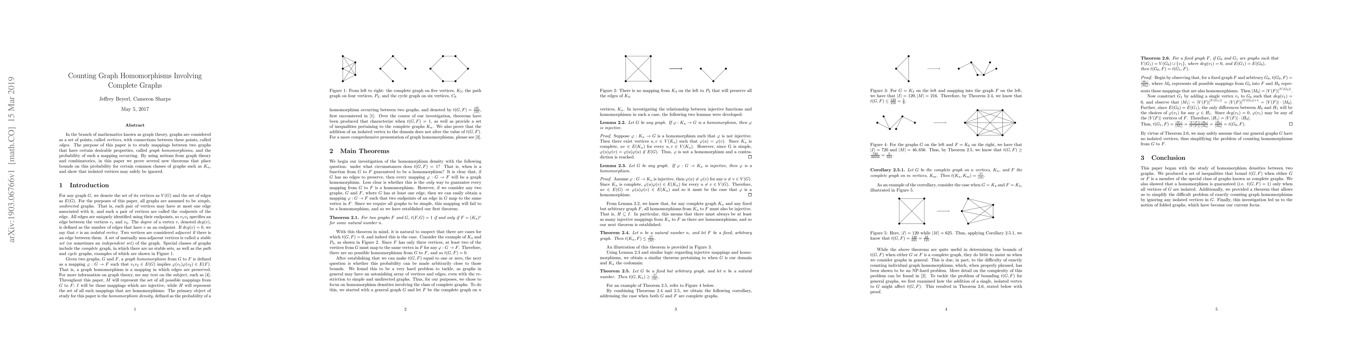 In the branch of mathematics known as graph theory, graphs are considered as a set of points, called vertices, with connections between these points, called edges. The purpose of this paper is to study mappings between two graphs that have certain desirable properties, called graph homomorphisms, and the probability of such a mapping occurring. By using notions from graph theory and combinatorics, in this paper we prove several new theorems that place bounds on this probability for certain common classes of graphs such as Kn, and show that isolated vertices may safely be ignored.