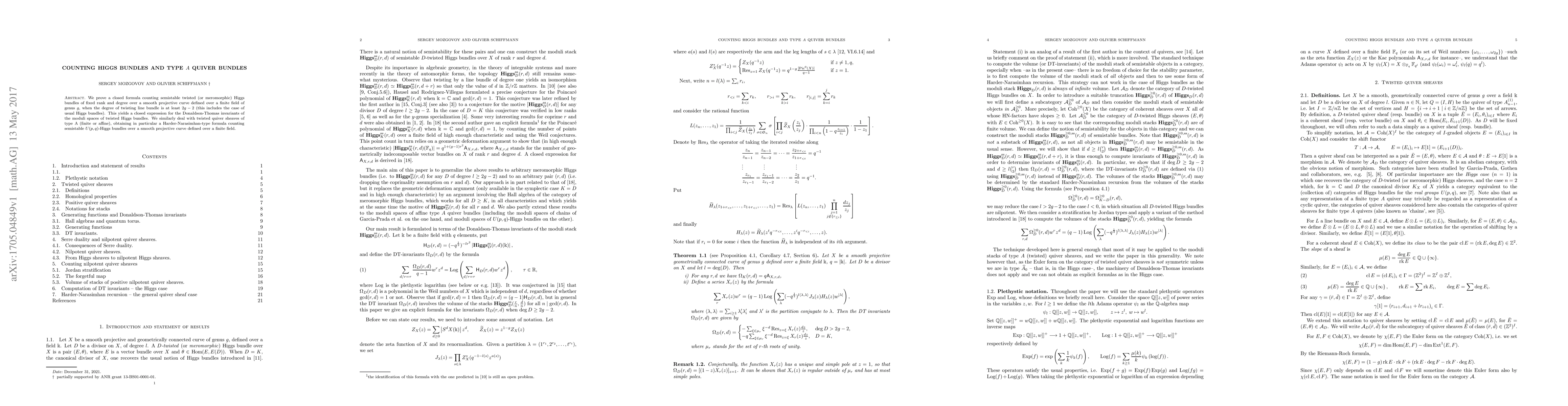 The paper presents a closed formula for counting semistable twisted Higgs bundles and type A quiver bundles over smooth projective curves over finite fields, establishing a connection to Donaldson-Thomas invariants and Harder-Narasimhan-type results for U(p,q)-bundles.