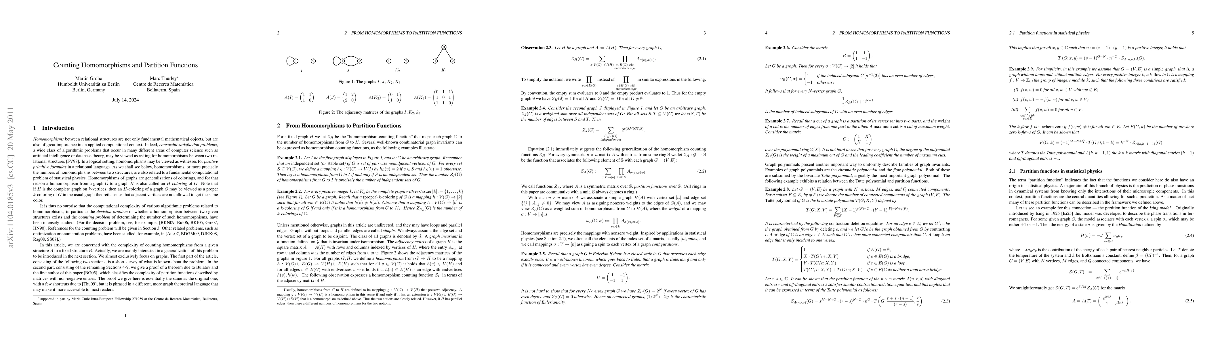 This paper surveys the complexity of counting homomorphisms between relational structures, focusing on graphs and weighted homomorphisms, also known as partition functions. It presents a proof of a classification theorem for partition functions based on matrices with non-negative entries, rephrased in a more graph-theoretical language for accessibility.