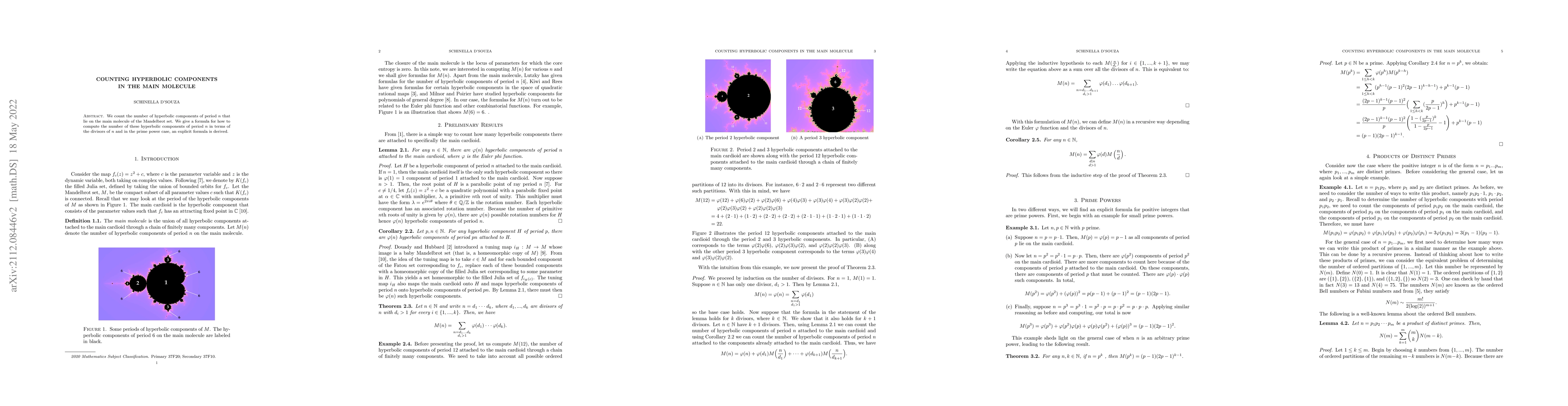 This paper provides a formula to compute the number of hyperbolic components of period n on the main molecule of the Mandelbrot set, relating it to the divisors of n, and derives an explicit formula for the prime power case.