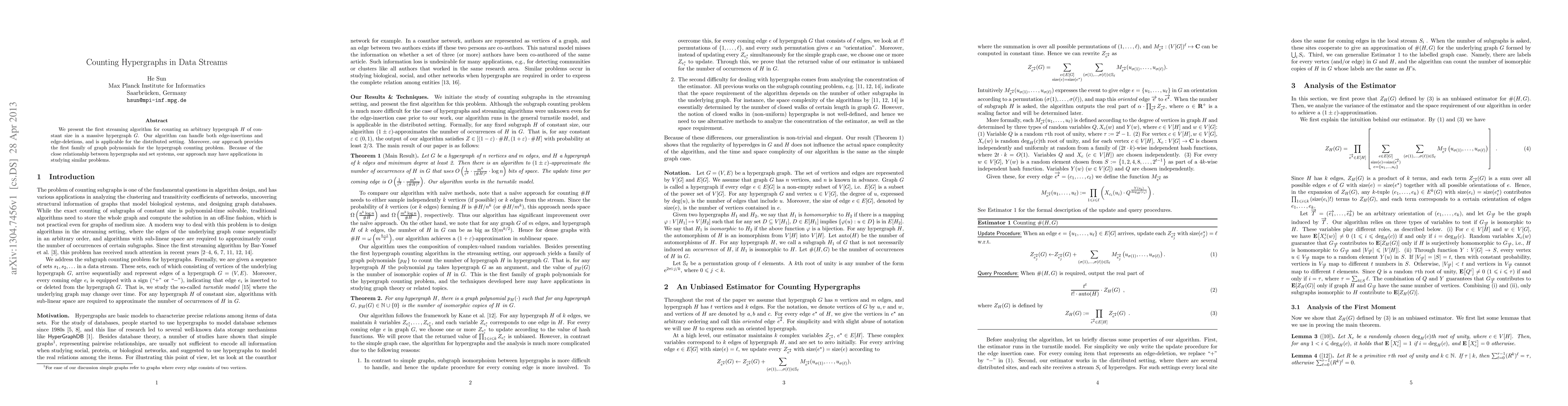 A new streaming algorithm can count arbitrary hypergraphs of constant size in massive graphs, handling edge insertions and deletions, while providing the first family of graph polynomials for this problem.