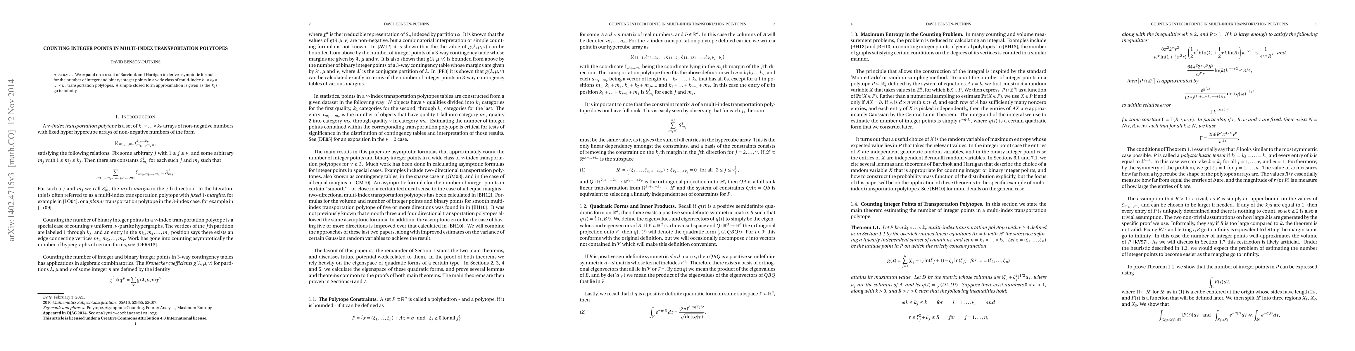 We expand on a result of Barvinok and Hartigan to derive asymptotic formulas for the number of integer and binary integer points in a wide class of multi-index $k_1\times k_2\times \ldots \times k_{\nu}$ transportation polytopes. A simple closed form approximation is given as the $k_j$s go to infinity.