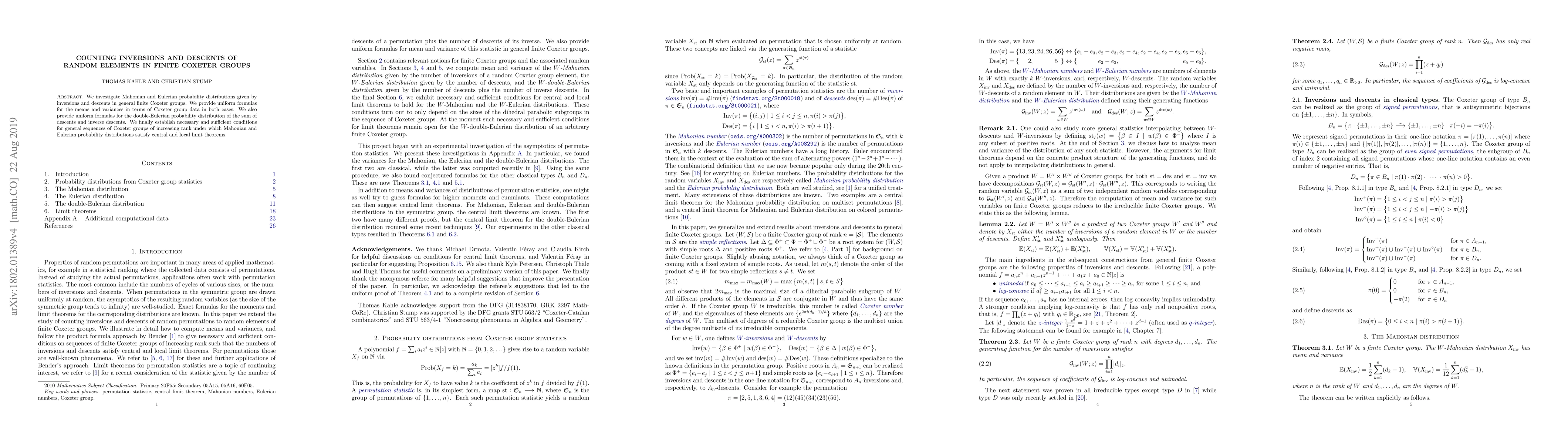 This paper studies Mahonian and Eulerian distributions related to inversions and descents in finite Coxeter groups, providing uniform formulas for their means and variances. It also establishes conditions for these distributions to satisfy central and local limit theorems.