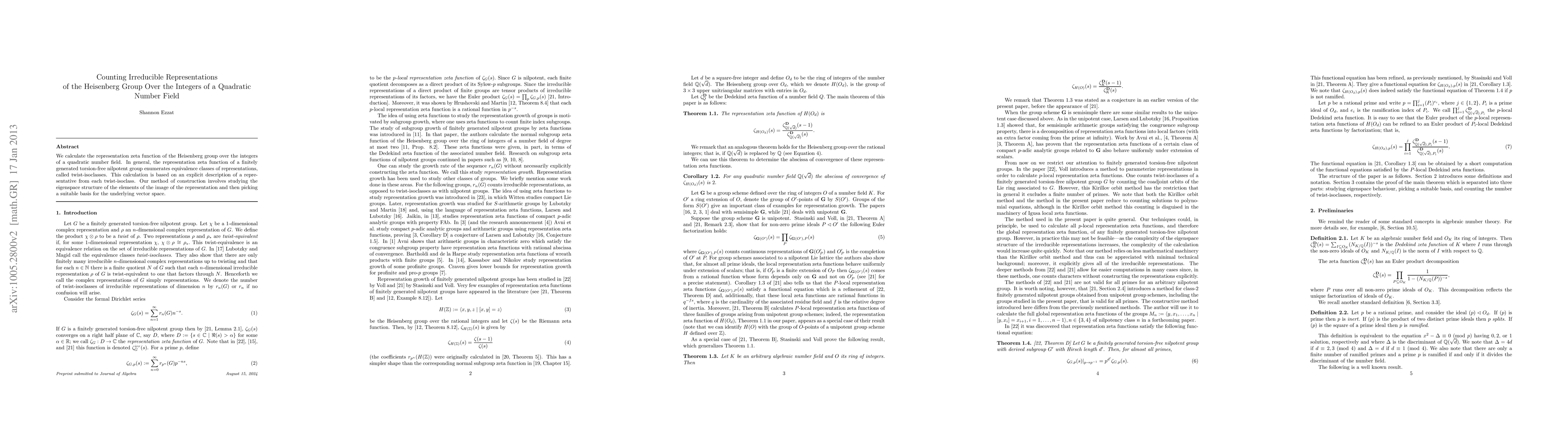 We calculate the representation growth zeta function of the discrete Heisenberg group over the integers of a quadratic number field. This is done by forming equivalence classes of representations, called twist iso-classes, and explicitly constructing a representative from each twist iso-class. Our method of construction involves studying the eigenspace structure of the elements of the image of the representation and then picking a suitable basis for the representation.