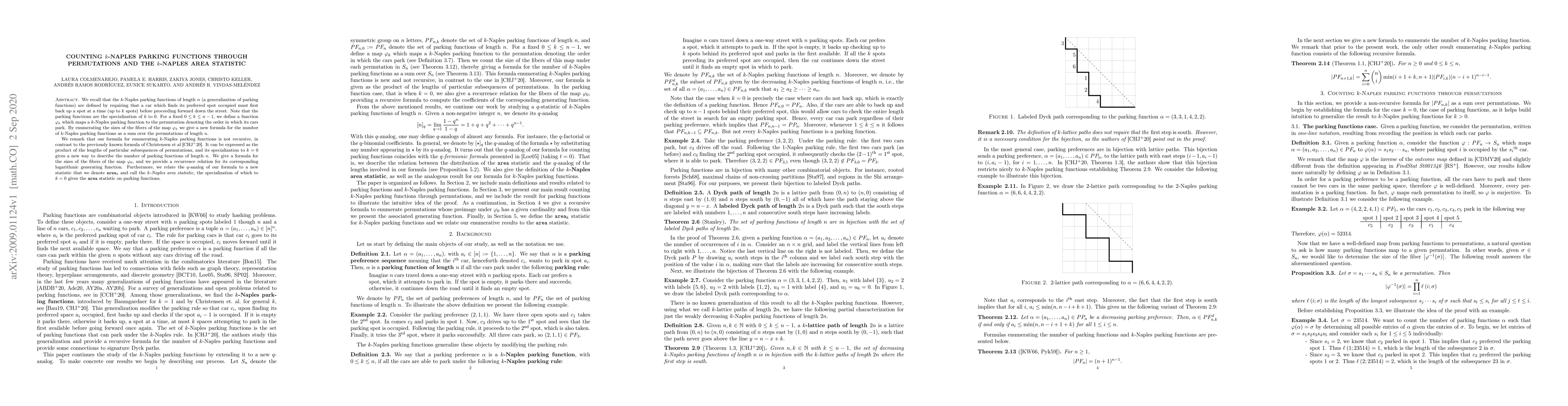 We recall that the $k$-Naples parking functions of length $n$ (a generalization of parking functions) are defined by requiring that a car which finds its preferred spot occupied must first back up a spot at a time (up to $k$ spots) before proceeding forward down the street. Note that the parking functions are the specialization of $k$ to $0$. For a fixed $0\leq k\leq n-1$, we define a function $\varphi_k$ which maps a $k$-Naples parking function to the permutation denoting the order in which its cars park. By enumerating the sizes of the fibers of the map $\varphi_k$ we give a new formula for the number of $k$-Naples parking functions as a sum over the permutations of length $n$. We remark that our formula for enumerating $k$-Naples parking functions is not recursive, in contrast to the previously known formula of Christensen et al [CHJ+20]. It can be expressed as the product of the lengths of particular subsequences of permutations, and its specialization to $k=0$ gives a new way to describe the number of parking functions of length $n$. We give a formula for the sizes of the fibers of the map $\varphi_0$, and we provide a recurrence relation for its corresponding logarithmic generating function. Furthermore, we relate the $q$-analog of our formula to a new statistic that we denote $\texttt{area}_k$ and call the $k$-Naples area statistic, the specialization of which to $k=0$ gives the $\texttt{area}$ statistic on parking functions.
