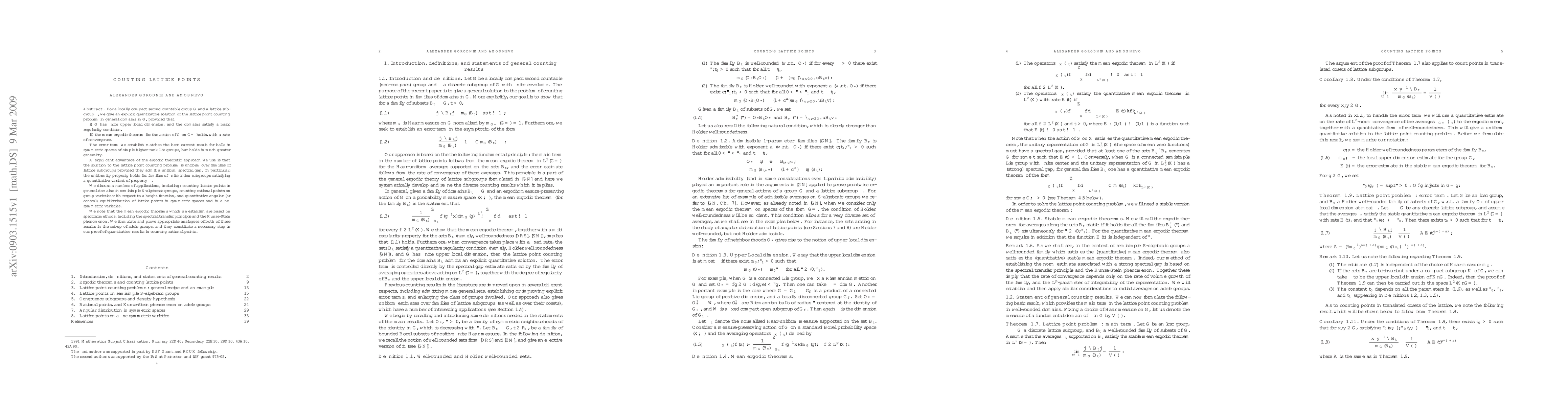 For a locally compact second countable group G and a lattice subgroup Gamma, we give an explicit quantitative solution of the lattice point counting problem in general domains in G, provided that i) G has finite upper local dimension, and the domains satisfy a basic regularity condition, ii) the mean ergodic theorem for the action of G on G/Gamma holds, with a rate of convergence. The error term we establish matches the best current result for balls in symmetric spaces of simple higher-rank Lie groups, but holds in much greater generality. In addition, it holds uniformly over families of lattices satisfying a uniform spectral gap. Applications include counting lattice points in general domains in semisimple S-algebraic groups, counting rational points on group varieties with respect to a height function, and quantitative angular (or conical) equidistribution of lattice points in symmetric spaces and in affine symmetric varieties. The mean ergodic theorems which we establish are based on spectral methods, including the spectral transfer principle and the Kunze-Stein phenomenon. We prove appropriate analogues of both of these results in the set-up of adele groups, and they constitute a necessary step in our proof of quantitative results in counting rational points.