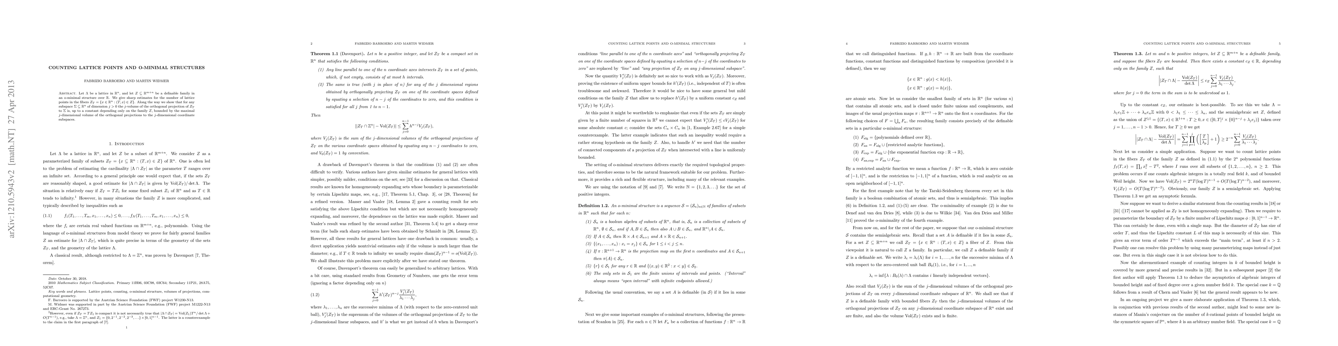 Let $\Lambda$ be a lattice in $\R^n$, and let $Z\subseteq \R^{m+n}$ be a definable family in an o-minimal structure over $\R$. We give sharp estimates for the number of lattice points in the fibers $Z_T={x\in \R^n: (T,x)\in Z}$. Along the way we show that for any subspace $\Sigma\subseteq\R^n$ of dimension $j>0$ the $j$-volume of the orthogonal projection of $Z_T$ to $\Sigma$ is, up to a constant depending only on the family $Z$, bounded by the maximal $j$-dimensional volume of the orthogonal projections to the $j$-dimensional coordinate subspaces.