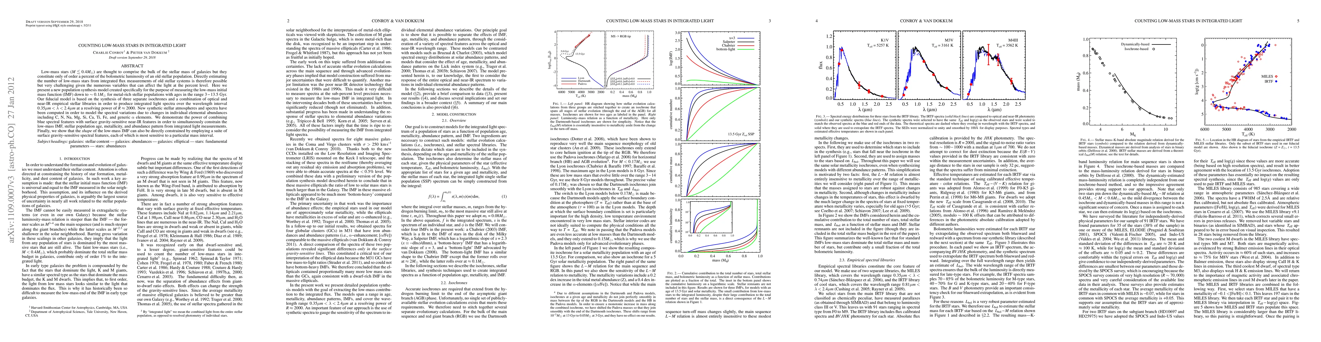 This research introduces a novel population synthesis model to estimate low-mass stars (below 0.4Msun) in old stellar systems using integrated light. The model combines optical and near-IR libraries, creating spectra with high resolving power. It demonstrates the ability to simultaneously determine the low-mass initial mass function, age, metallicity, and abundance pattern from integrated light, using specific blue and near-IR features sensitive to surface gravity and mass intervals.