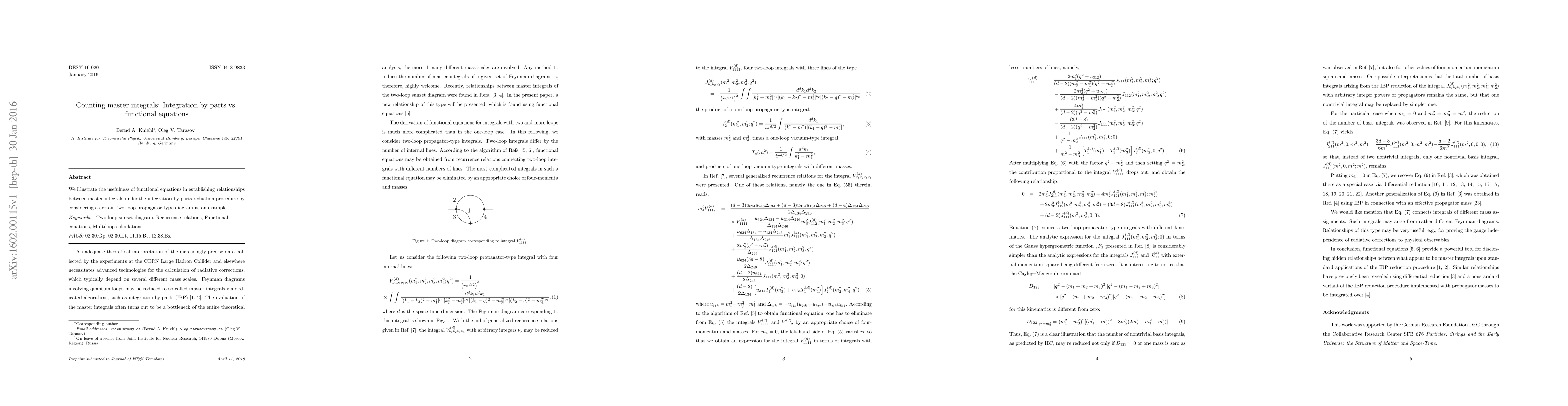 We illustrate the usefulness of functional equations in establishing relationships between master integrals under the integration-by-parts reduction procedure by considering a certain two-loop propagator-type diagram as an example.