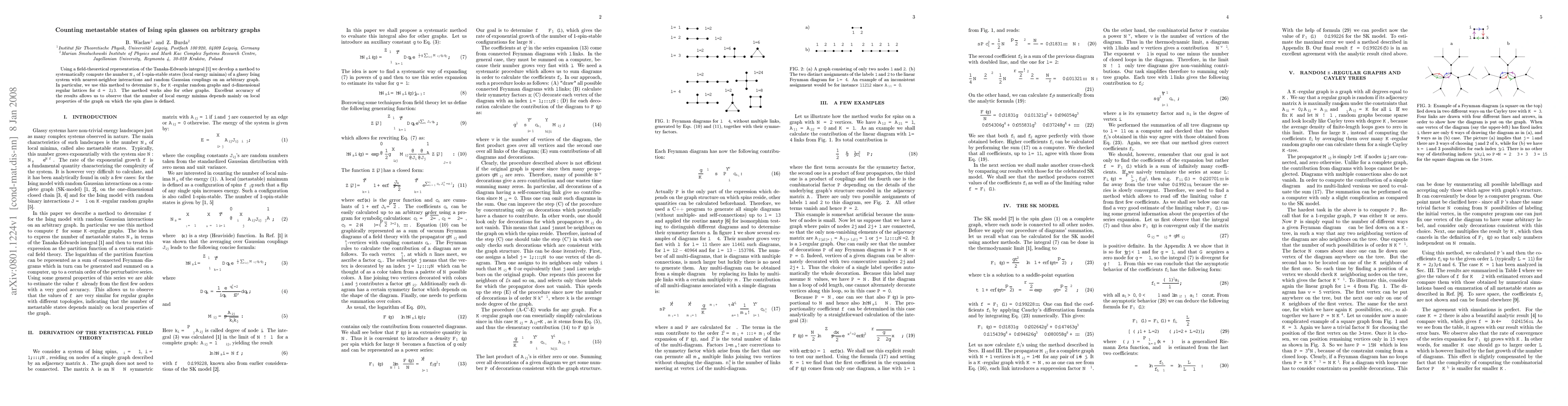 Using a field-theoretical representation of the Tanaka-Edwards integral we develop a method to systematically compute the number N_s of 1-spin-stable states (local energy minima) of a glassy Ising system with nearest-neighbor interactions and random Gaussian couplings on an arbitrary graph. In particular, we use this method to determine N_s for K-regular random graphs and d-dimensional regular lattices for d=2,3. The method works also for other graphs. Excellent accuracy of the results allows us to observe that the number of local energy minima depends mainly on local properties of the graph on which the spin glass is defined.