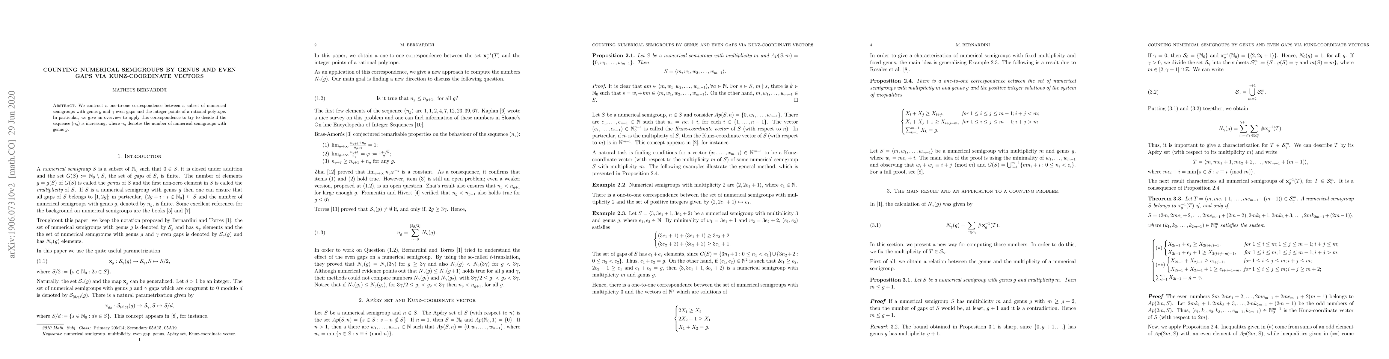 Numerical semigroups with specific genus and even gaps can be mapped to points on a rational polytope, establishing a one-to-one correspondence that helps study the sequence of their counts.