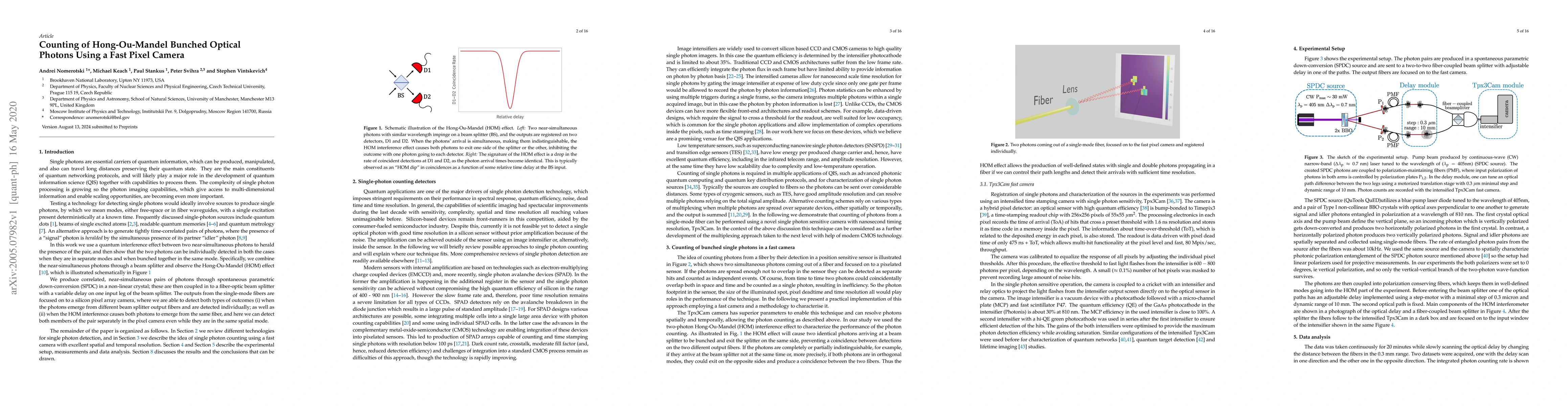 This paper explores the use of a high-resolution silicon-pixel camera for detecting bunched optical photons, demonstrating its ability to independently count two photons from a single spatial mode via the Hong-Ou-Mandel interference effect. Experiments using a spontaneous parametric down-conversion source validate the camera's counting capabilities.