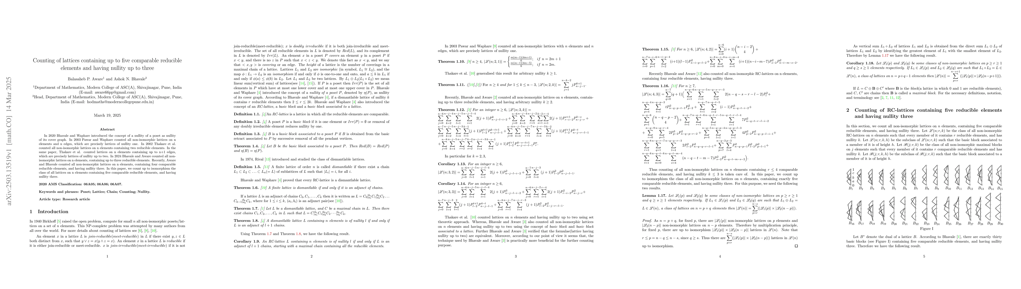 The research introduces novel counting methods and formulas for lattices with constrained reducible elements and nullity, building upon previous work by Pawar, Waphare, Thakare, and others.