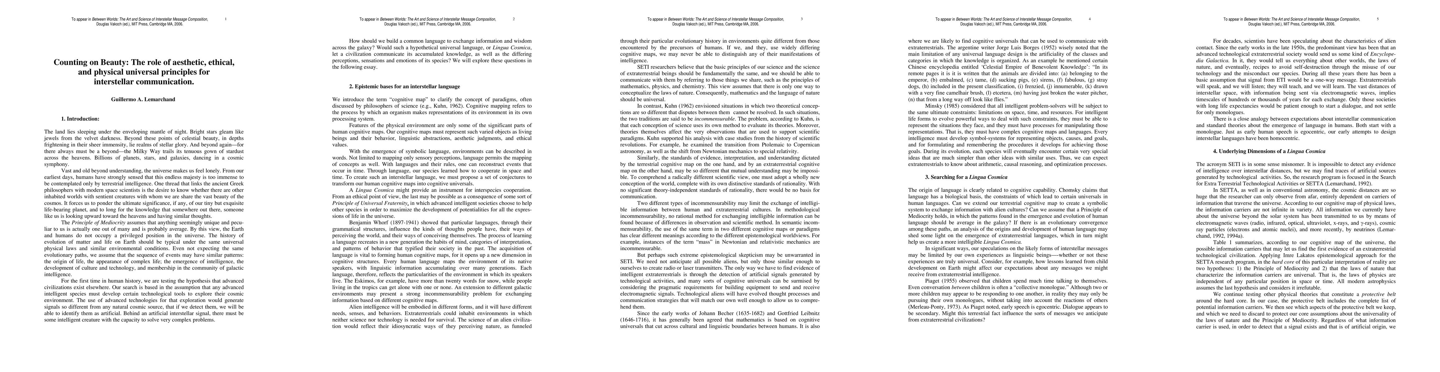 SETI researchers believe that the basic principles of our science and the science of extraterrestrial beings should be fundamentally the same, and we should be able to communicate with them by referring to those things we share, such as the principles of mathematics, physics, and chemistry (a similar cognitive map of nature). This view assumes that there is only one way to conceptualize the laws of nature. Consequently, mathematics and the language of nature should be universal. In this essay, we discuss the epistemological bases of the last assumptions. We describe all the hypotheses behind the universality of the laws of nature and the restrictions that any technology should have to establish contact with other galactic technological civilization. We introduce some discussions about the limitations of homocentric views. We discuss about the possible use of aesthetic cognitive universals as well as ethical ones in the design of interstellar messages. We discuss the role of symmetry as a universal cognitive map. We give a specific example on how to use the Golden Section principles to design a hypothetical interstellar message based in physical and aesthetical cognitive universals. We build a space of configuration matrix, representing all the variables to be taken into account for designing an electromagnetic interstellar message (e.g. frequency, polarization, bandwidth, transmitting power, modulation, rate of information, galactic coordinates, etc.) against the limitations imposed by physical, technological, aesthetical and ethical constraints. We show how to use it, in order to make hypotheses about the characteristics and properties of hypothetical extraterrestrial artificial signals and their detection by existing SETI projects.