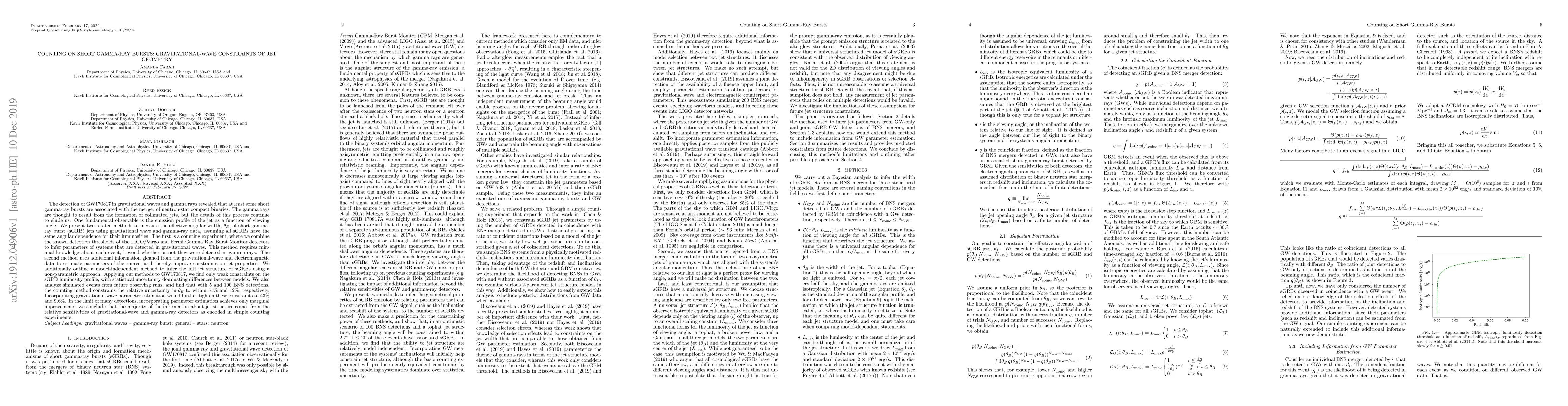 The detection of GW170817 in gravitational waves and gamma rays revealed that short gamma-ray bursts are associated with the merger of neutron-stars. Gamma rays are thought to result from the formation of collimated jets, but the details of this process continue to elude us. One fundamental observable is the emission profile of the jet as a function of viewing angle. We present two methods to measure the effective angular width, $\theta_B$, of short gamma-ray burst (sGRB) jets using gravitational wave and gamma-ray data, assuming all sGRBs have the same angular dependence for their luminosities. The first is a counting experiment, where we combine the known detection thresholds of the LIGO/Virgo and Fermi Gamma Ray Burst Monitor detectors to infer parameters of systems that are detected in gravitational waves. This method requires minimal knowledge about each event, beyond whether or not they were detected in gamma-rays. The second method uses additional information from the gravitational-wave and electromagnetic data to estimate parameters of the source, and thereby improve constraints on jet properties. Applying our methods to GW170817, we find only weak constraints on the sGRB luminosity profile, with statistical uncertainty dominating differences between models. We also analyze simulated events from future observing runs, and find that with 5 and 100 BNS detections, the counting method constrains the relative uncertainty in $\theta_B$ to within 51% and 12%, respectively. Incorporating gravitational-wave parameter estimation would further tighten these constraints to 43% and 9.6%. In the limit of many detections, incorporating parameter estimation achieves only marginal improvements; we conclude that the majority of the information about jet structure comes from the relative sensitivities of gravitational-wave and gamma-ray detectors as encoded in simple counting experiments.