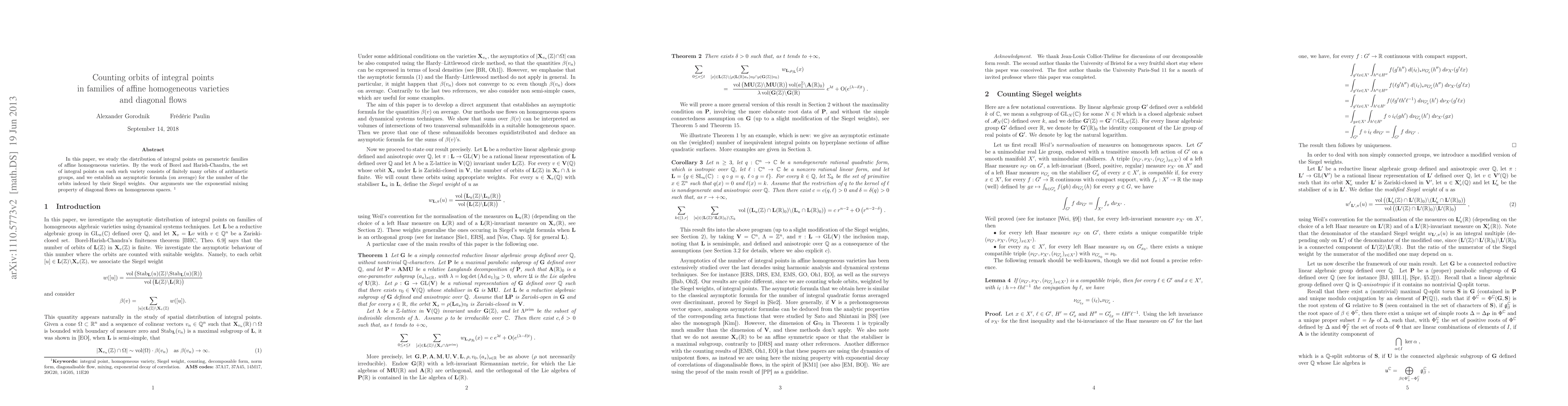 This paper investigates the distribution of integral points on affine homogeneous varieties, establishing an asymptotic formula for the number of orbits indexed by their Siegel weights. The study leverages the exponential mixing property of diagonal flows to derive results on inequivalent integral representations and equivalence classes of integral points on sections of quadratic surfaces.