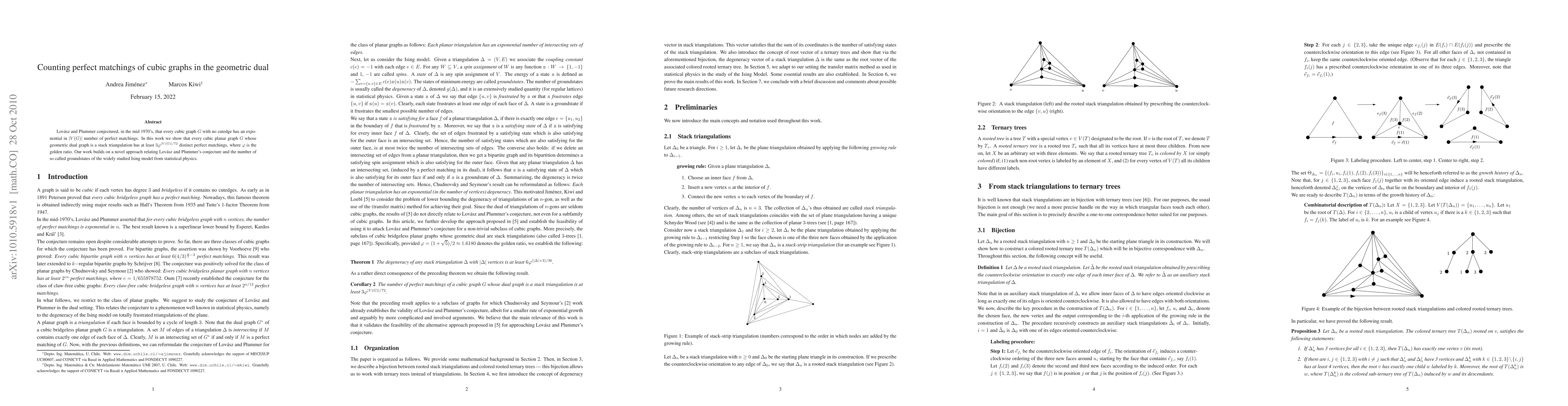 This research proves that cubic planar graphs with a geometric dual as a stack triangulation possess at least \(3\phi / |V(G)|/72\) distinct perfect matchings, where \(\phi\) is the golden ratio, supporting a conjecture by Lovász and Plummer. The study employs a new connection between the conjecture and the Ising model's groundstates.