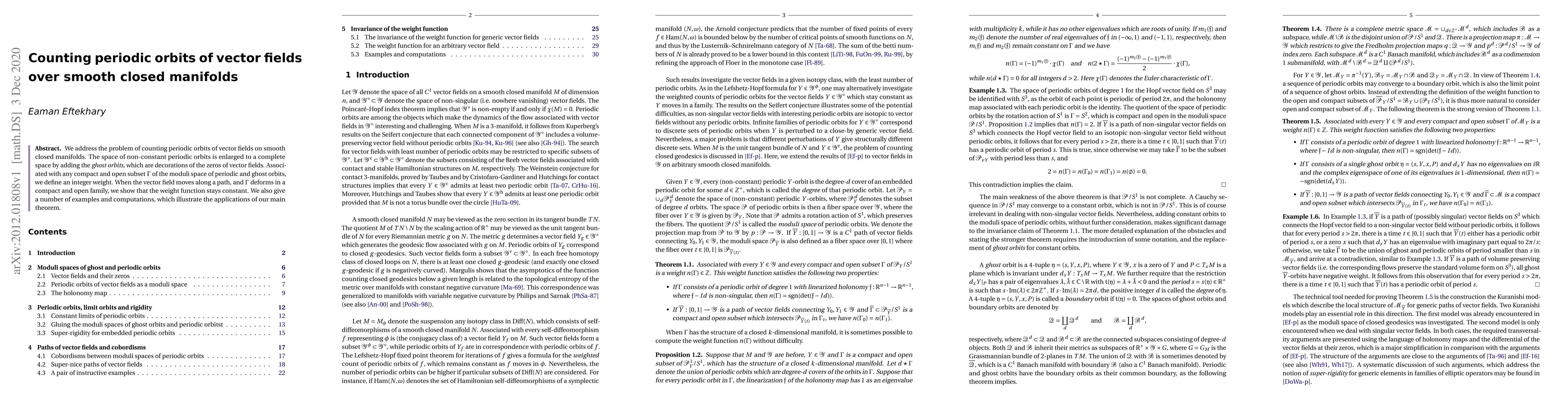 This paper investigates counting periodic orbits of vector fields on smooth closed manifolds by introducing ghost orbits. It demonstrates the invariance of a defined integer weight under deformations of compact, open subsets of the moduli space of these orbits, alongside providing illustrative examples.