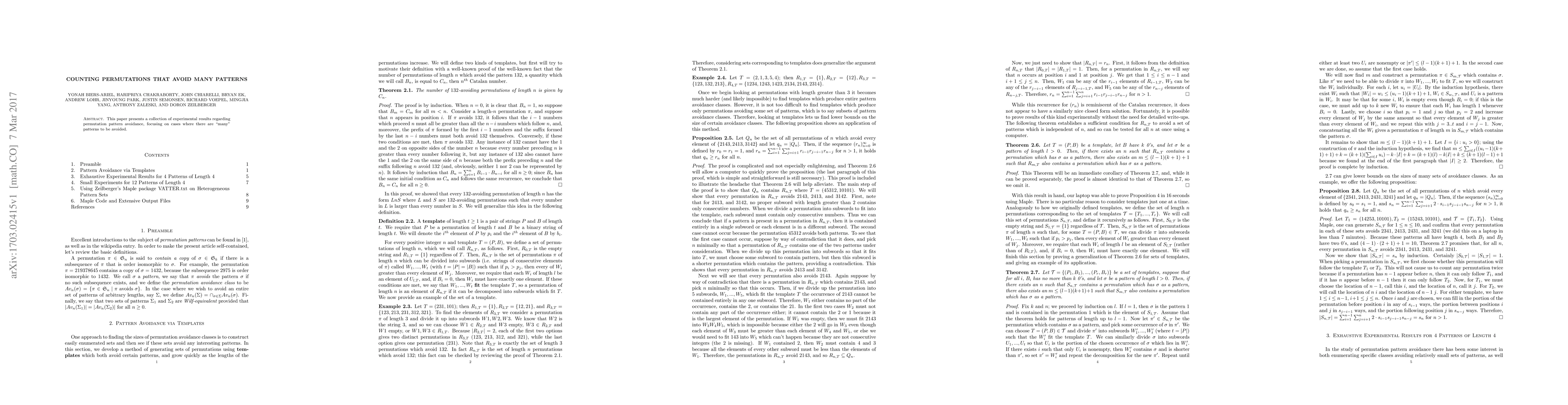 This research paper shares experimental findings on permutation pattern avoidance, particularly when avoiding numerous patterns. It explores extensive cases of pattern avoidance, contributing to the understanding of complex pattern avoidance in permutations.