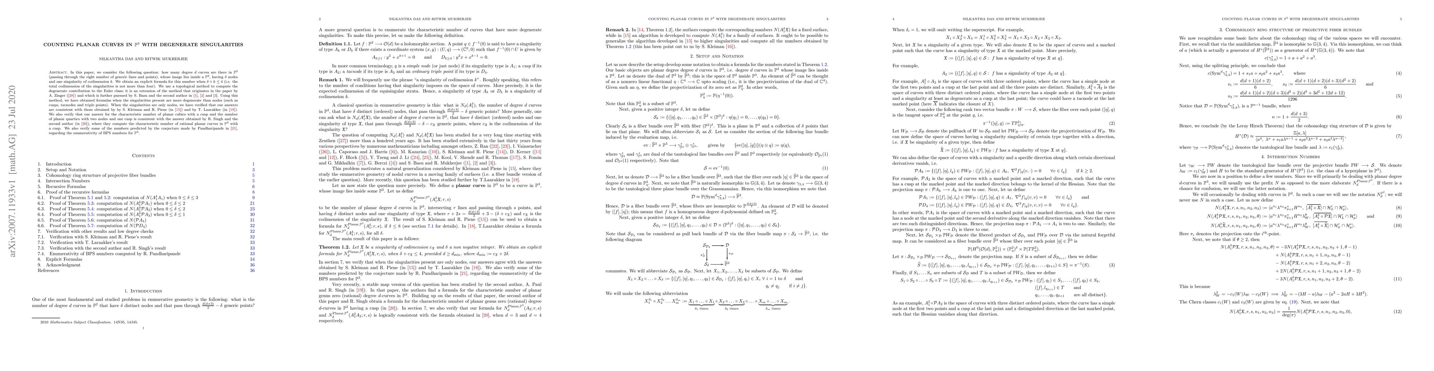 This paper provides an explicit formula for counting degree $d$ planar curves in $\mathbb{P}^3$ with $\delta$ nodes and one singularity of codimension $k$, under the condition $\delta+k \leq 4$. The authors use a topological method to compute the degenerate Euler class, extending previous work by A. Zinger and S. Basu.