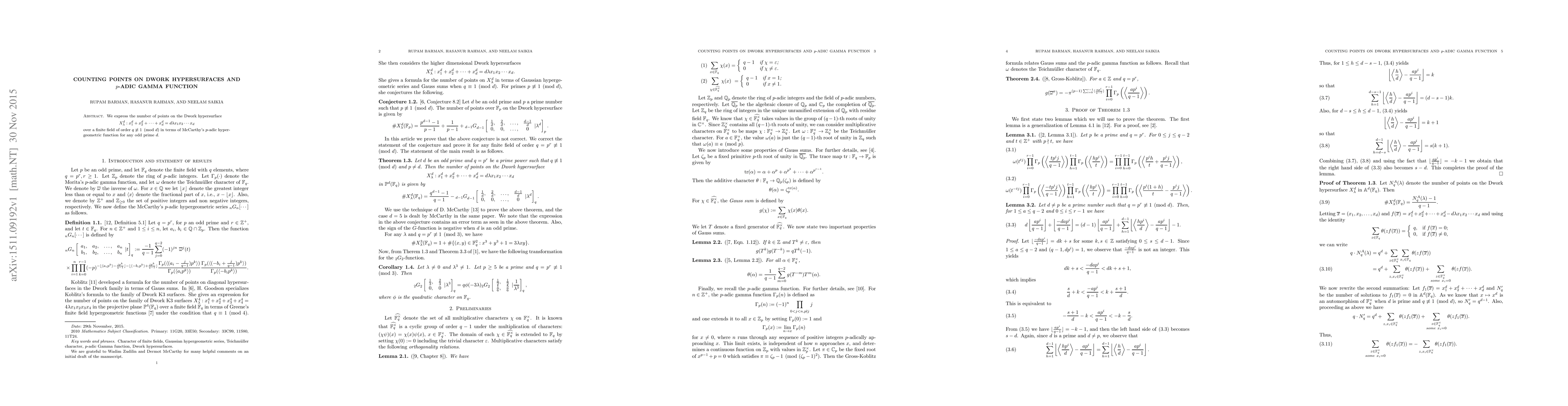We express the number of points on the Dwork hypersurface $$X_{\lambda}^d: x_1^d+x_2^d+\cdots +x_d^d=d\lambda x_1x_2\cdots x_d$$ over a finite field of order $q \not \equiv 1 \pmod{d}$ in terms of McCarthy's $p$-adic hypergeometric function for any odd prime $d$.