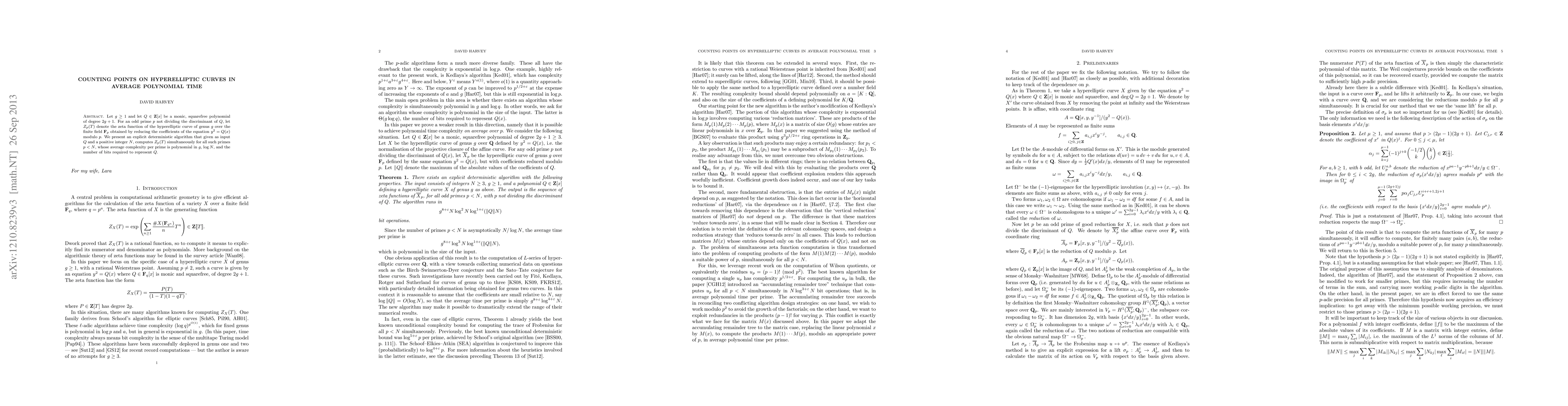 Let g >= 1 and let Q be a monic, squarefree polynomial of degree 2g + 1 in Z[x]. For an odd prime p not dividing the discriminant of Q, let Z_p(T) denote the zeta function of the hyperelliptic curve of genus g over the finite field F_p obtained by reducing the coefficients of the equation y^2 = Q(x) modulo p. We present an explicit deterministic algorithm that given as input Q and a positive integer N, computes Z_p(T) simultaneously for all such primes p < N, whose average complexity per prime is polynomial in g, log N, and the number of bits required to represent Q.