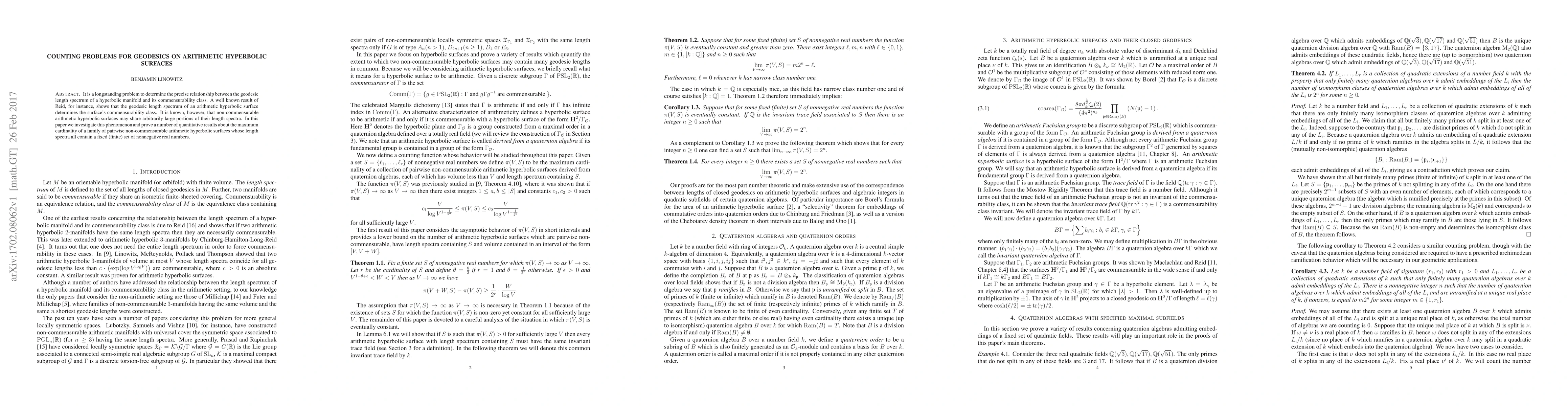 Researchers investigate how non-commensurable arithmetic hyperbolic surfaces share similar length spectra, proving a quantitative bound on the number of such surfaces.