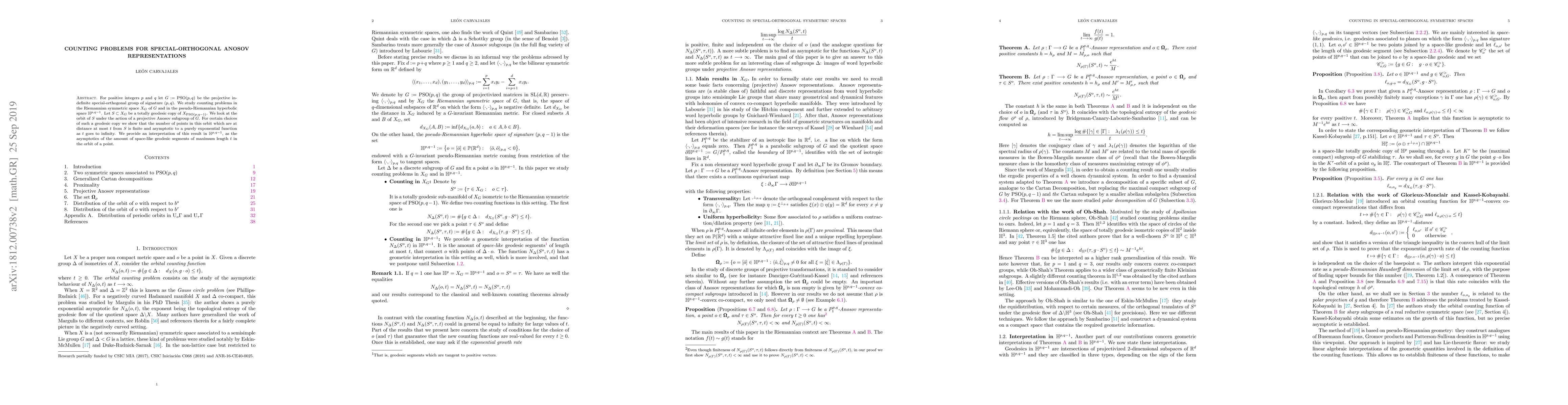 For positive integers $p$ and $q$ let $G:=\textrm{PSO}(p,q)$ be the projective indefinite special-orthogonal group of signature $(p,q)$. We study counting problems in the Riemannian symmetric space $X_G$ of $G$ and in the pseudo-Riemannian hyperbolic space $\mathbb{H}^{p,q-1}$. Let $S\subset X_G$ be a totally geodesic copy of $X_{\textrm{PSO}(p,q-1)}$. We look at the orbit of $S$ under the action of a projective Anosov subgroup of $G$. For certain choices of such a geodesic copy we show that the number of points in this orbit which are at distance at most $t$ from $S$ is finite and asymptotic to a purely exponential function as $t$ goes to infinity. We provide an interpretation of this result in $\mathbb{H}^{p,q-1}$, as the asymptotics of the amount of space-like geodesic segments of maximum length $t$ in the orbit of a point.