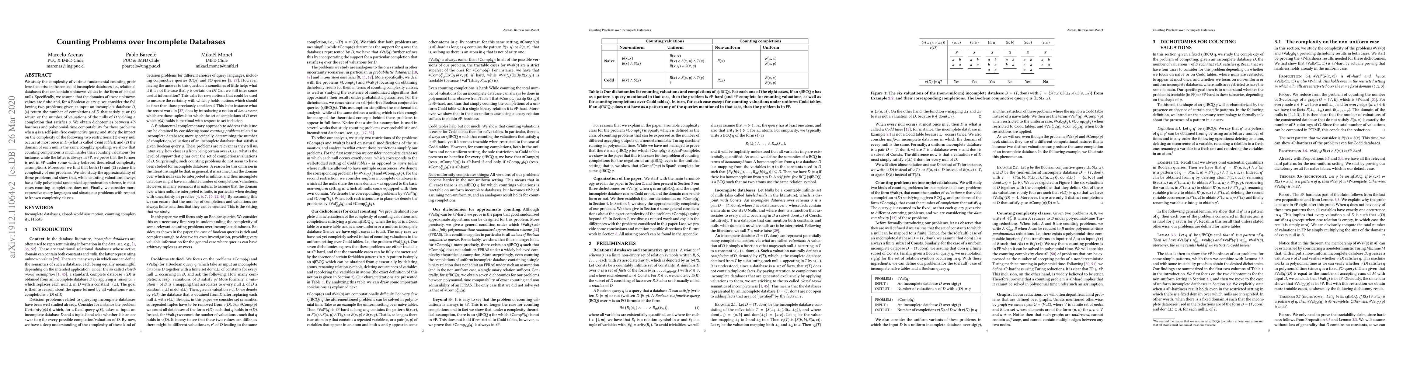 We study the complexity of various fundamental counting problems that arise in the context of incomplete databases, i.e., relational databases that can contain unknown values in the form of labeled nulls. Specifically, we assume that the domains of these unknown values are finite and, for a Boolean query $q$, we consider the following two problems: given as input an incomplete database $D$, (a) return the number of completions of $D$ that satisfy $q$; or (b) return or the number of valuations of the nulls of $D$ yielding a completion that satisfies $q$. We obtain dichotomies between #P-hardness and polynomial-time computability for these problems when $q$ is a self-join--free conjunctive query, and study the impact on the complexity of the following two restrictions: (1) every null occurs at most once in $D$ (what is called Codd tables); and (2) the domain of each null is the same. Roughly speaking, we show that counting completions is much harder than counting valuations (for instance, while the latter is always in #P, we prove that the former is not in #P under some widely believed theoretical complexity assumption). Moreover, we find that both (1) and (2) reduce the complexity of our problems. We also study the approximability of these problems and show that, while counting valuations always has a fully polynomial randomized approximation scheme, in most cases counting completions does not. Finally, we consider more expressive query languages and situate our problems with respect to known complexity classes.